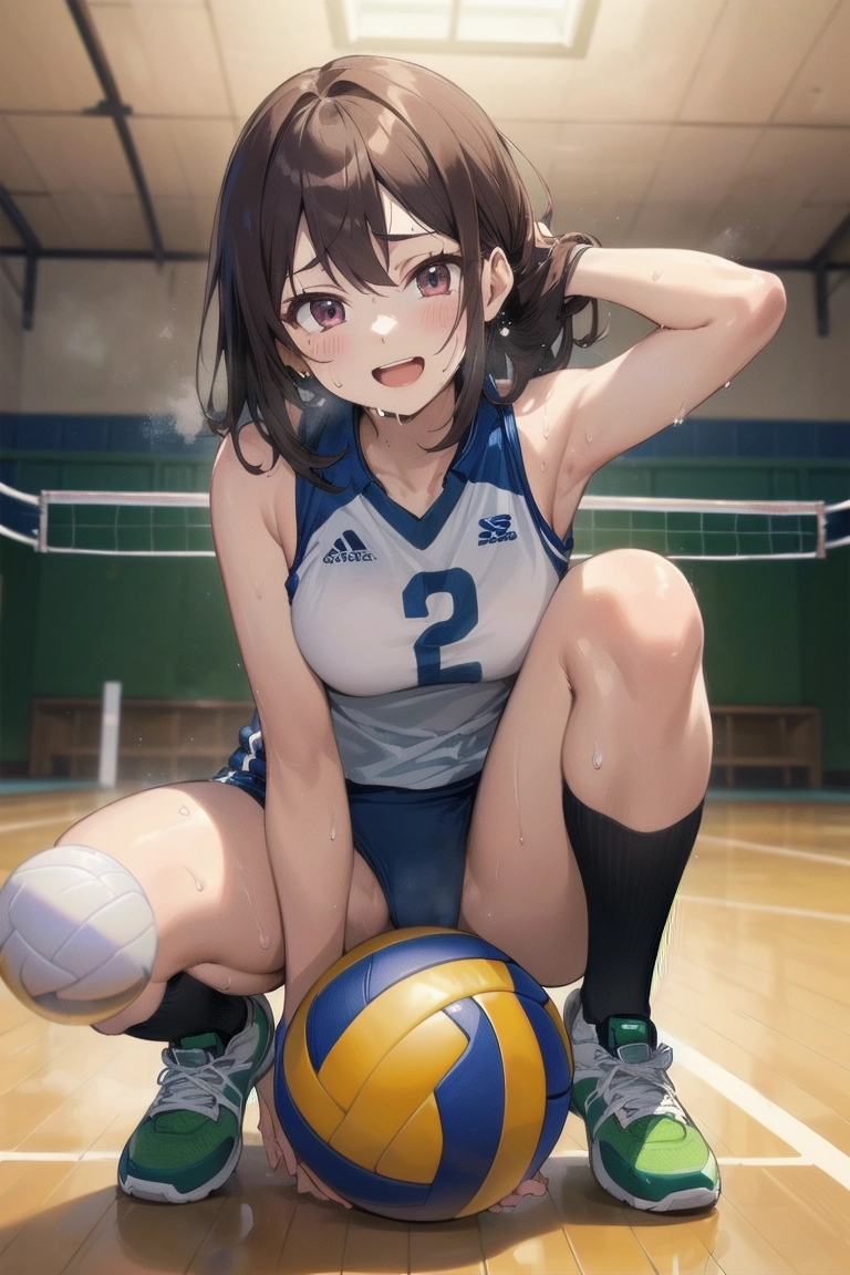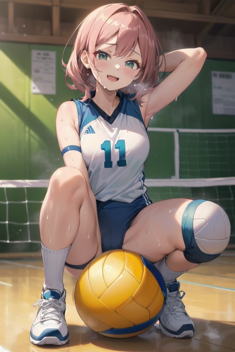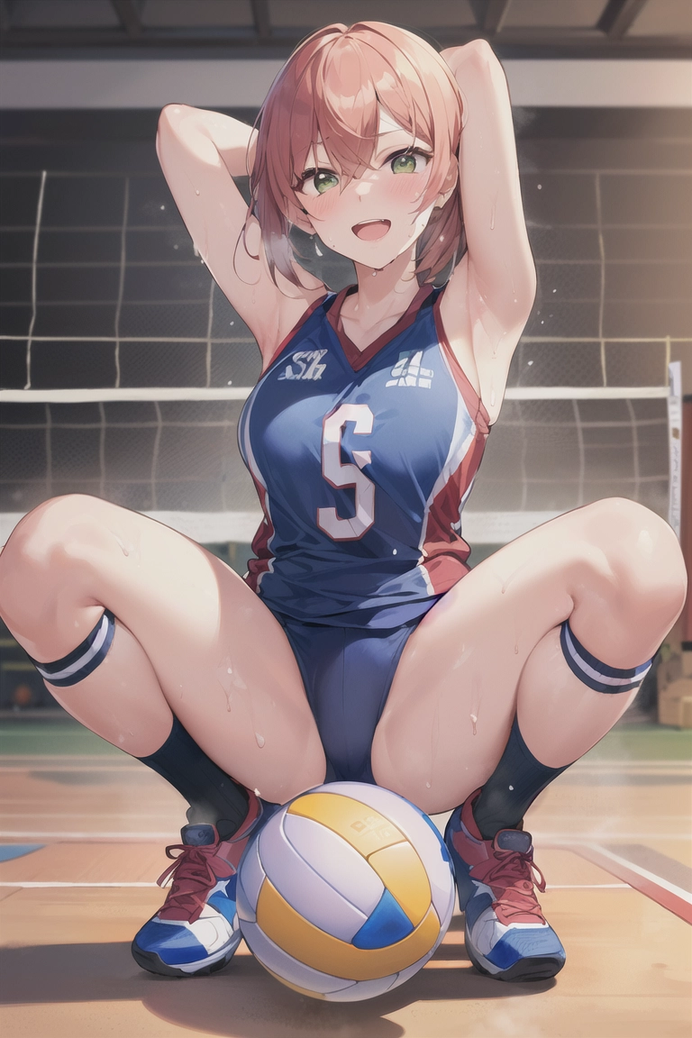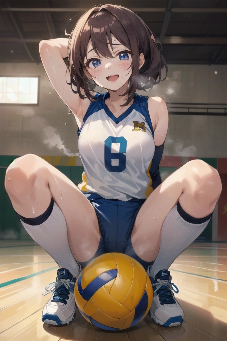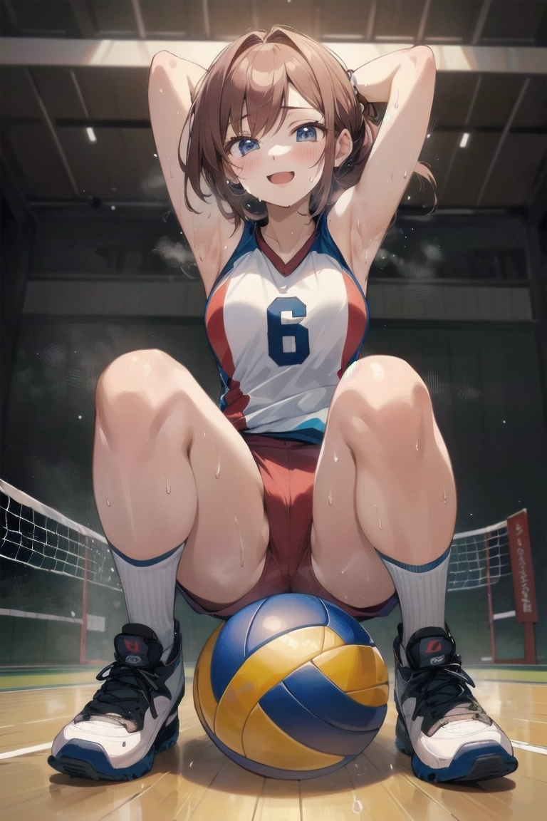 ボールに跨がるバレー女子