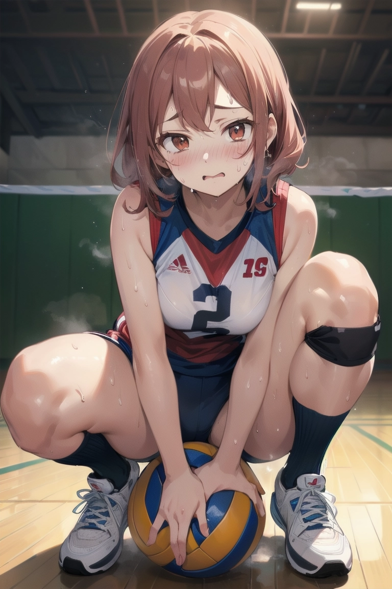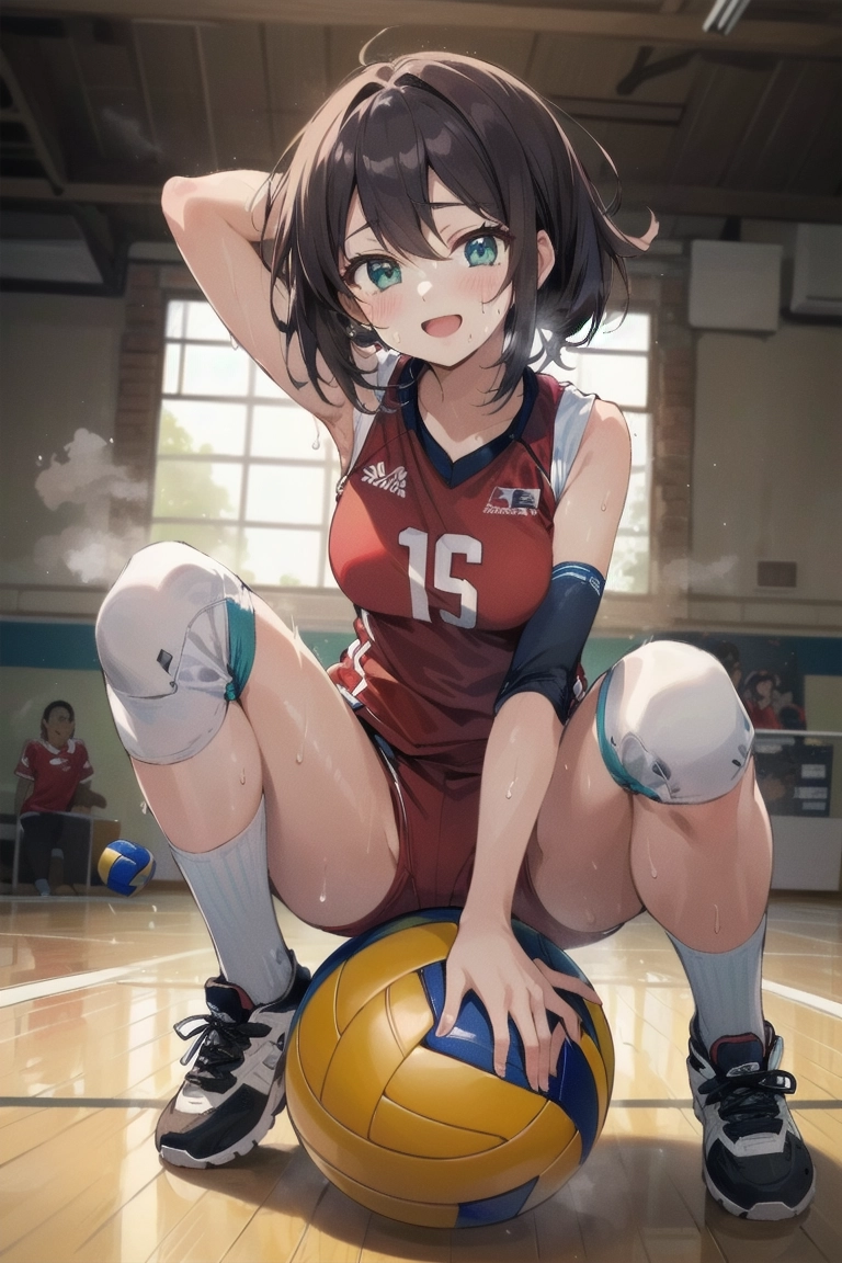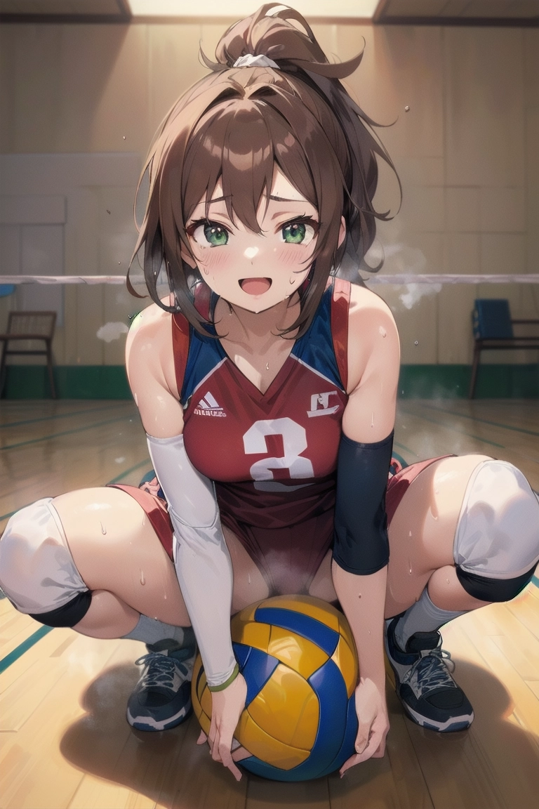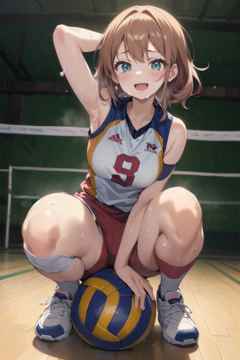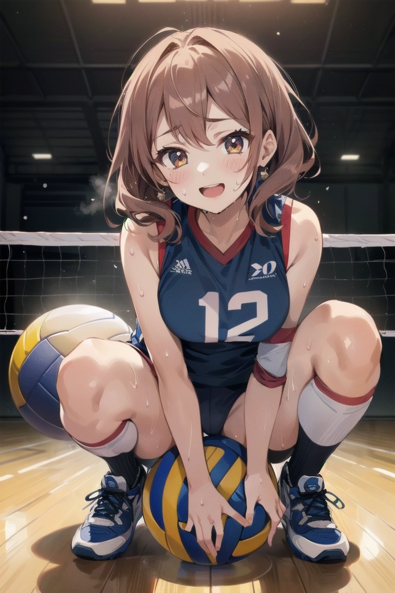 ボールに跨がるバレー女子