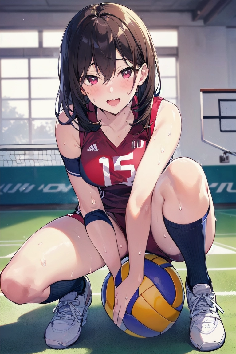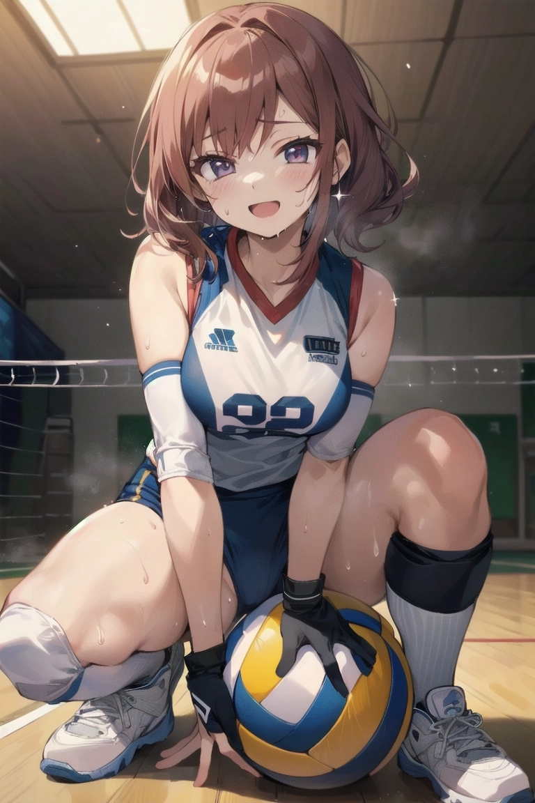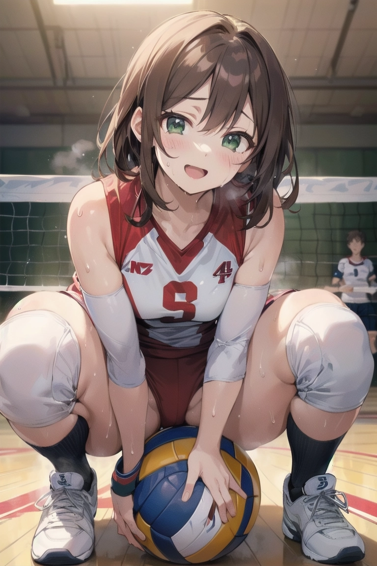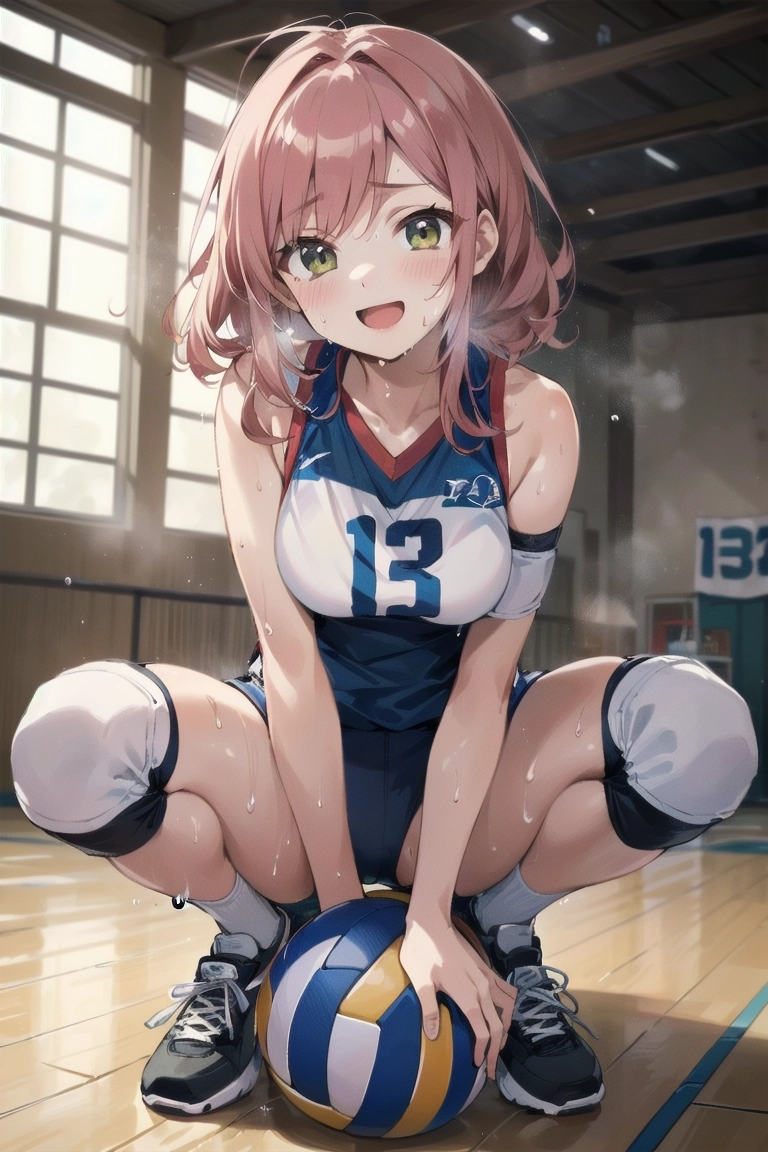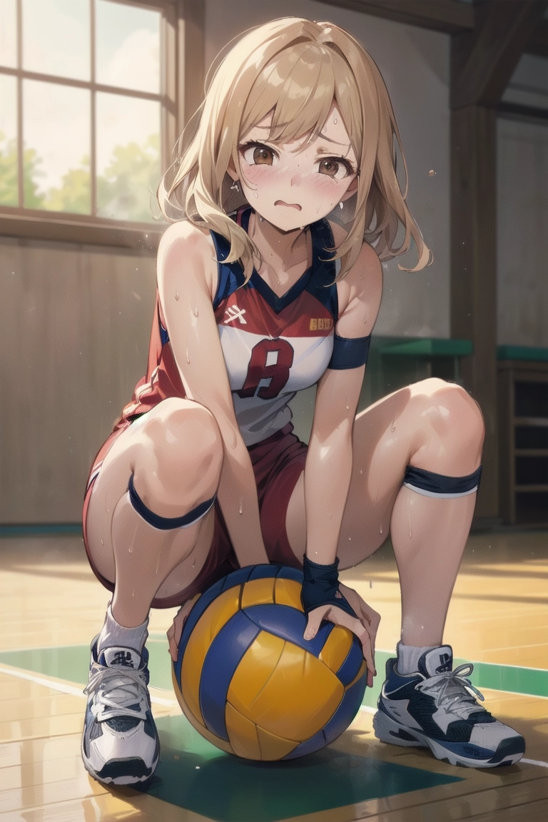 ボールに跨がるバレー女子