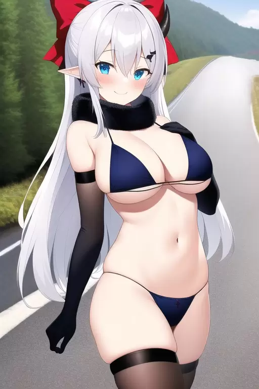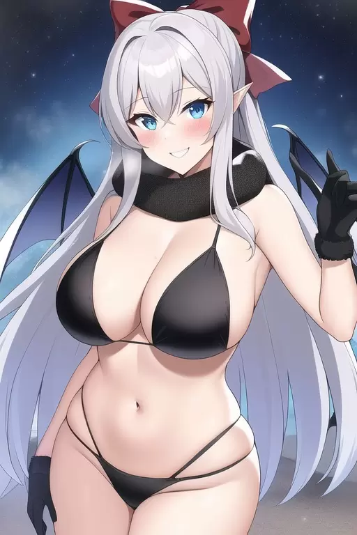 黒ビキニの悪魔とマフラーです。