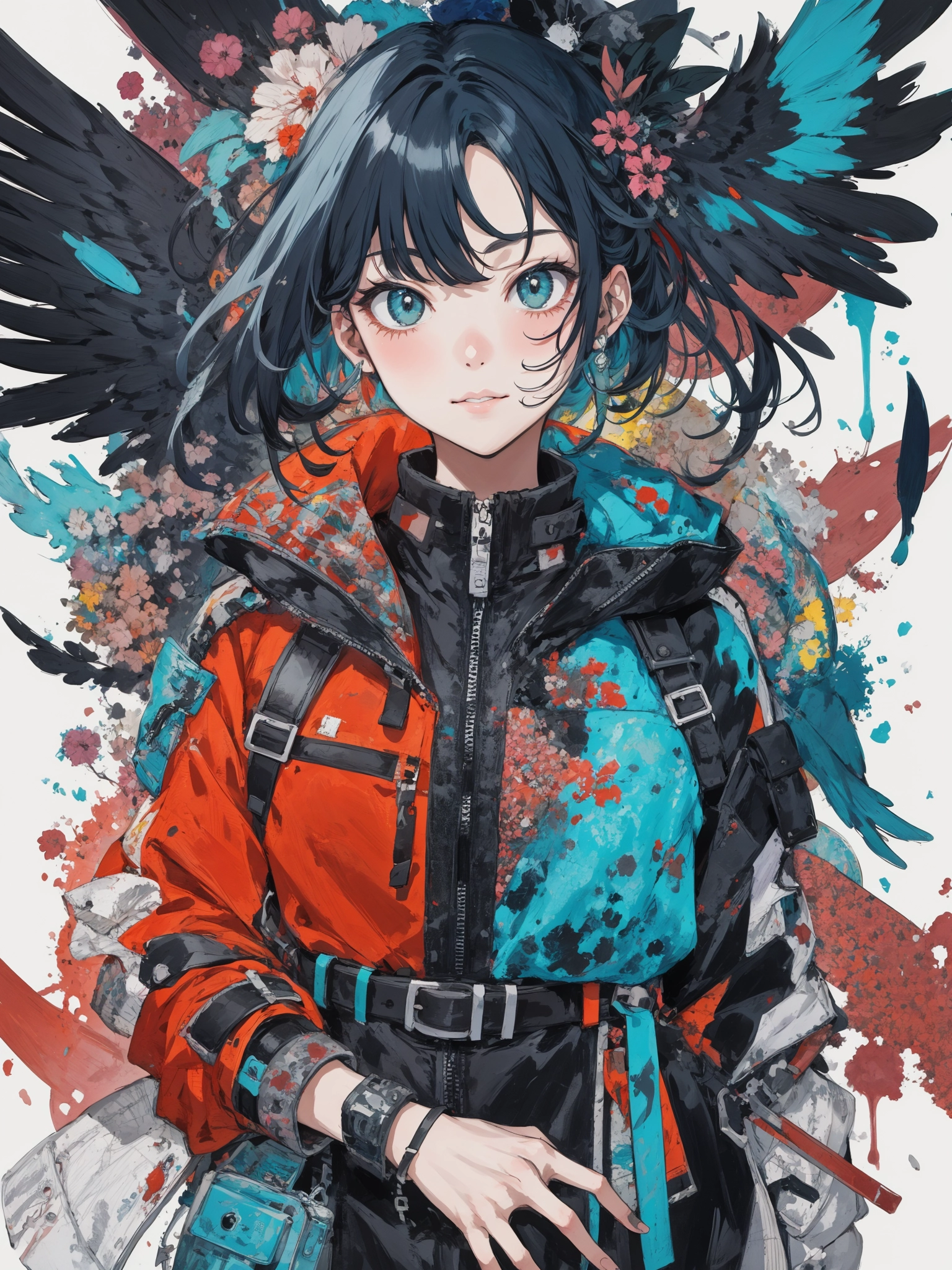 (masterpiece, best quality:1.3), illustration, (extream detailed), one girl, angel Descending