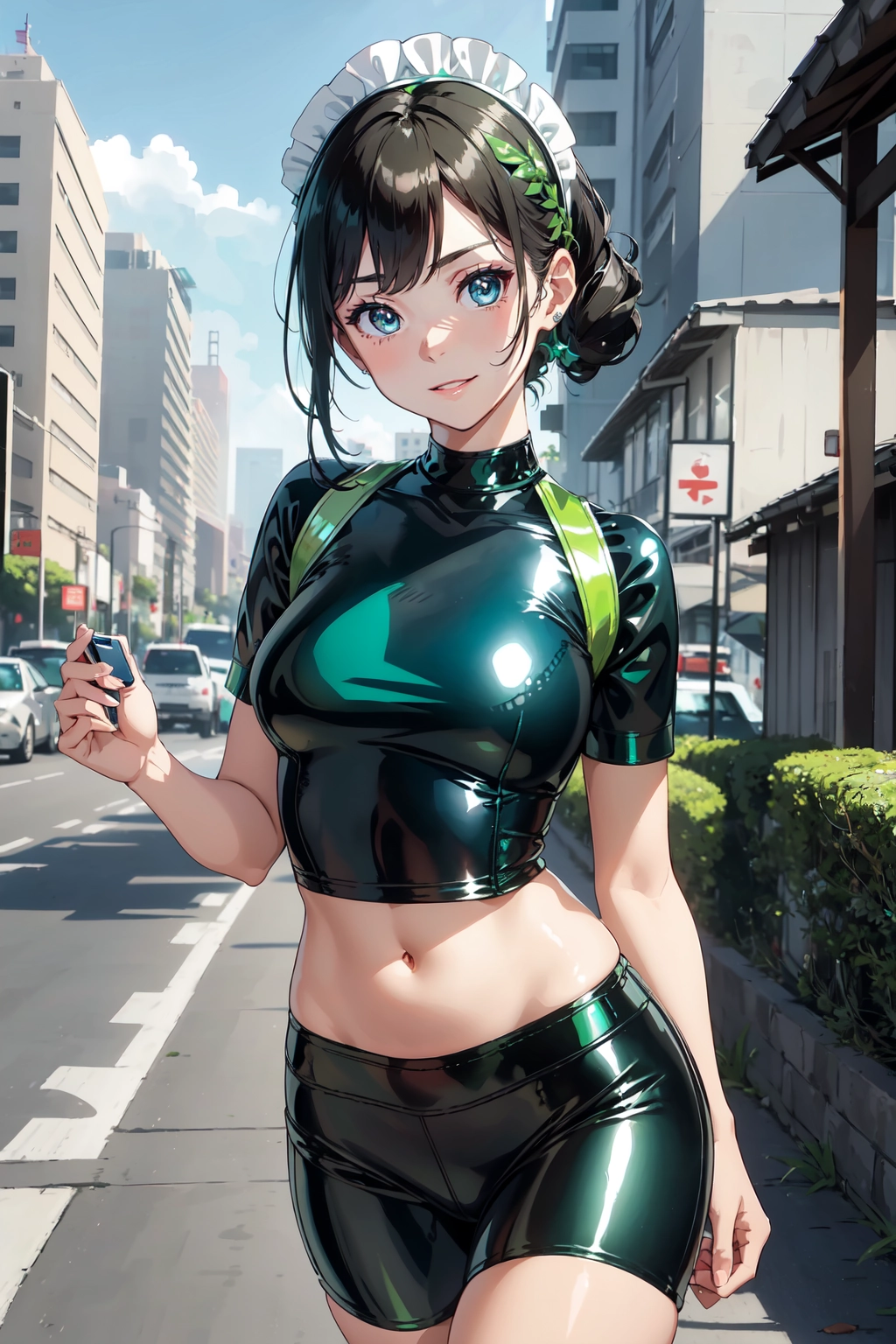 She usually wears black, but today she wears a colorful outfit.