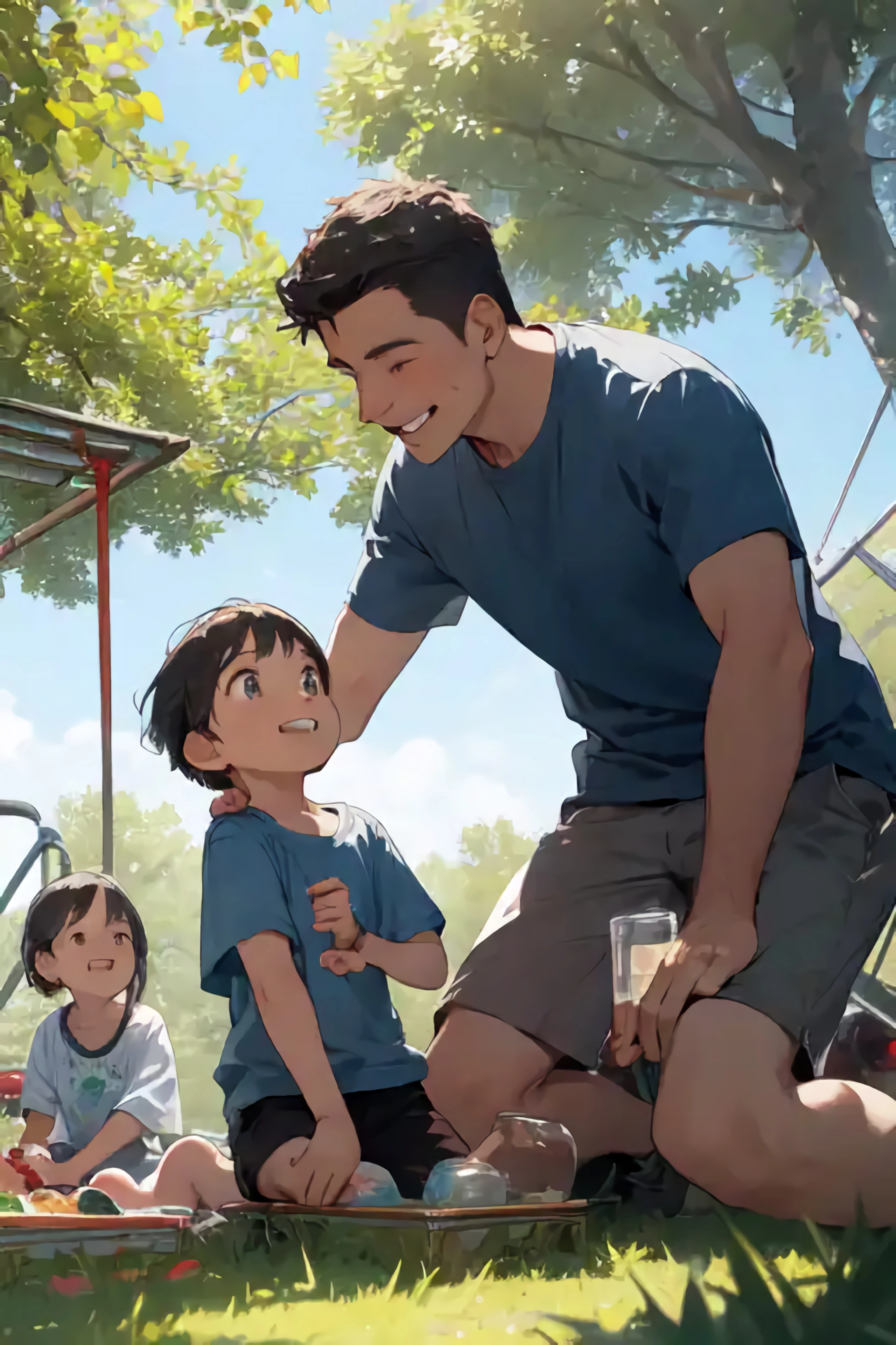 休日に家族と過ごすお父さん