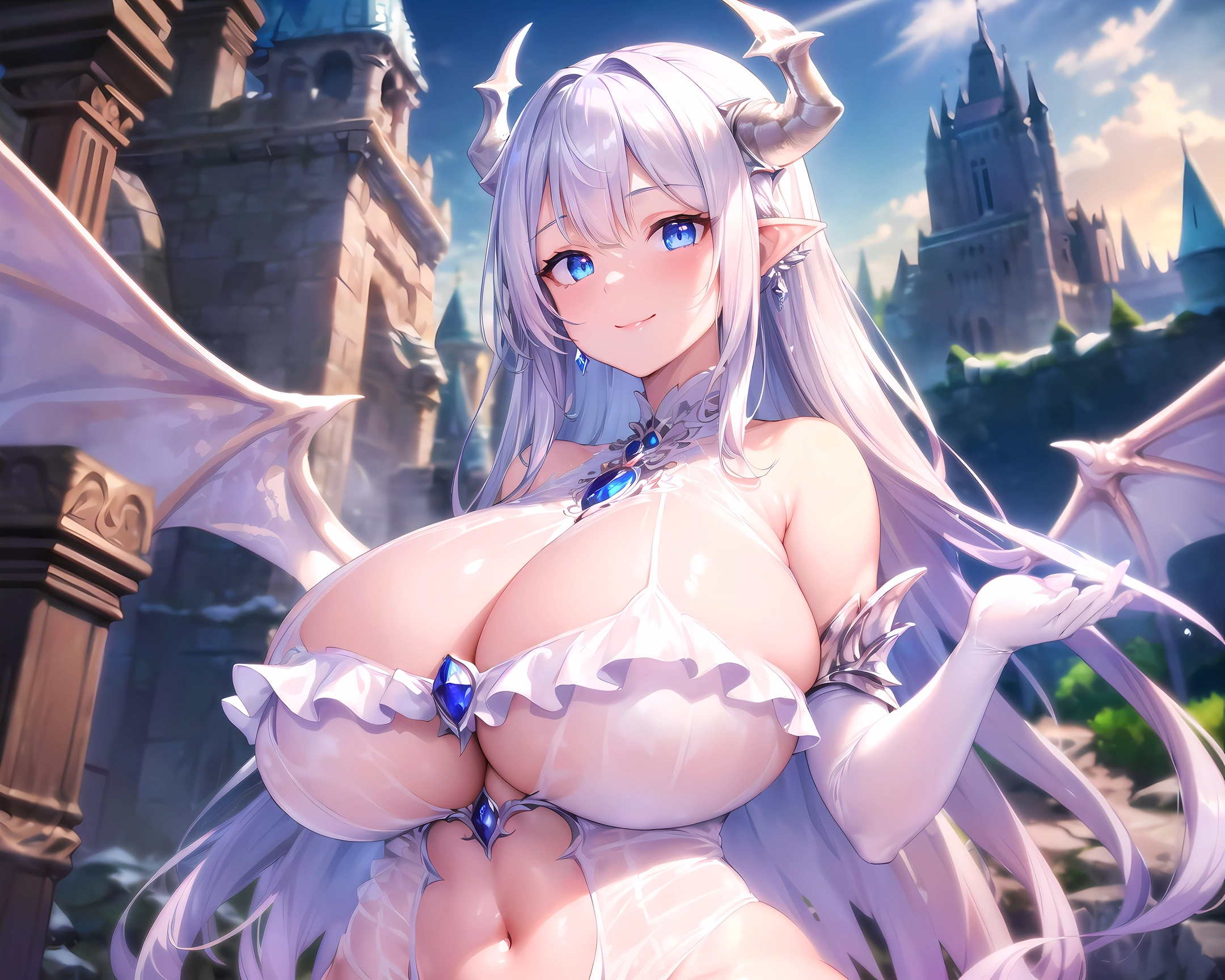 碧眼の白ドラゴン娘