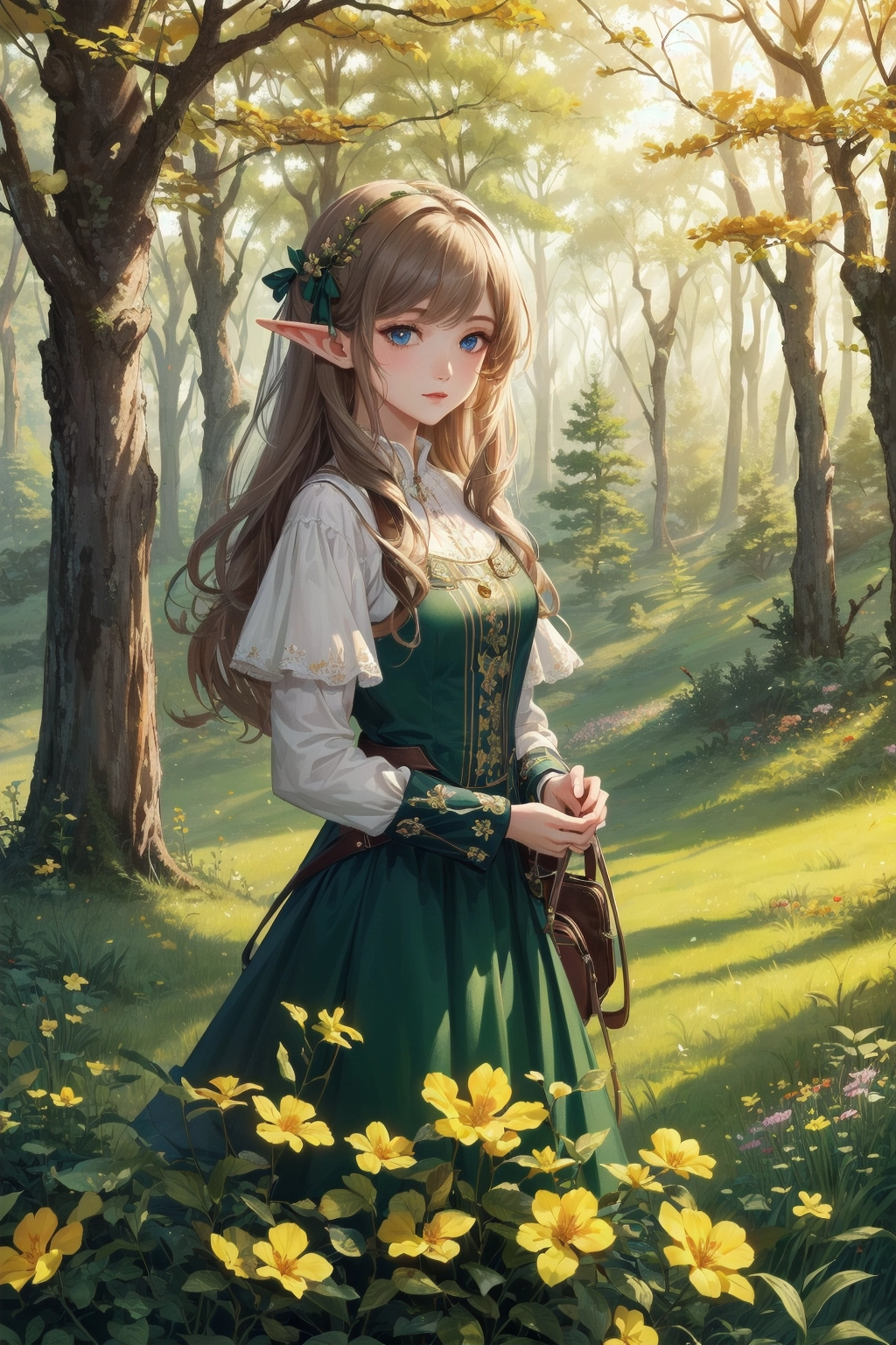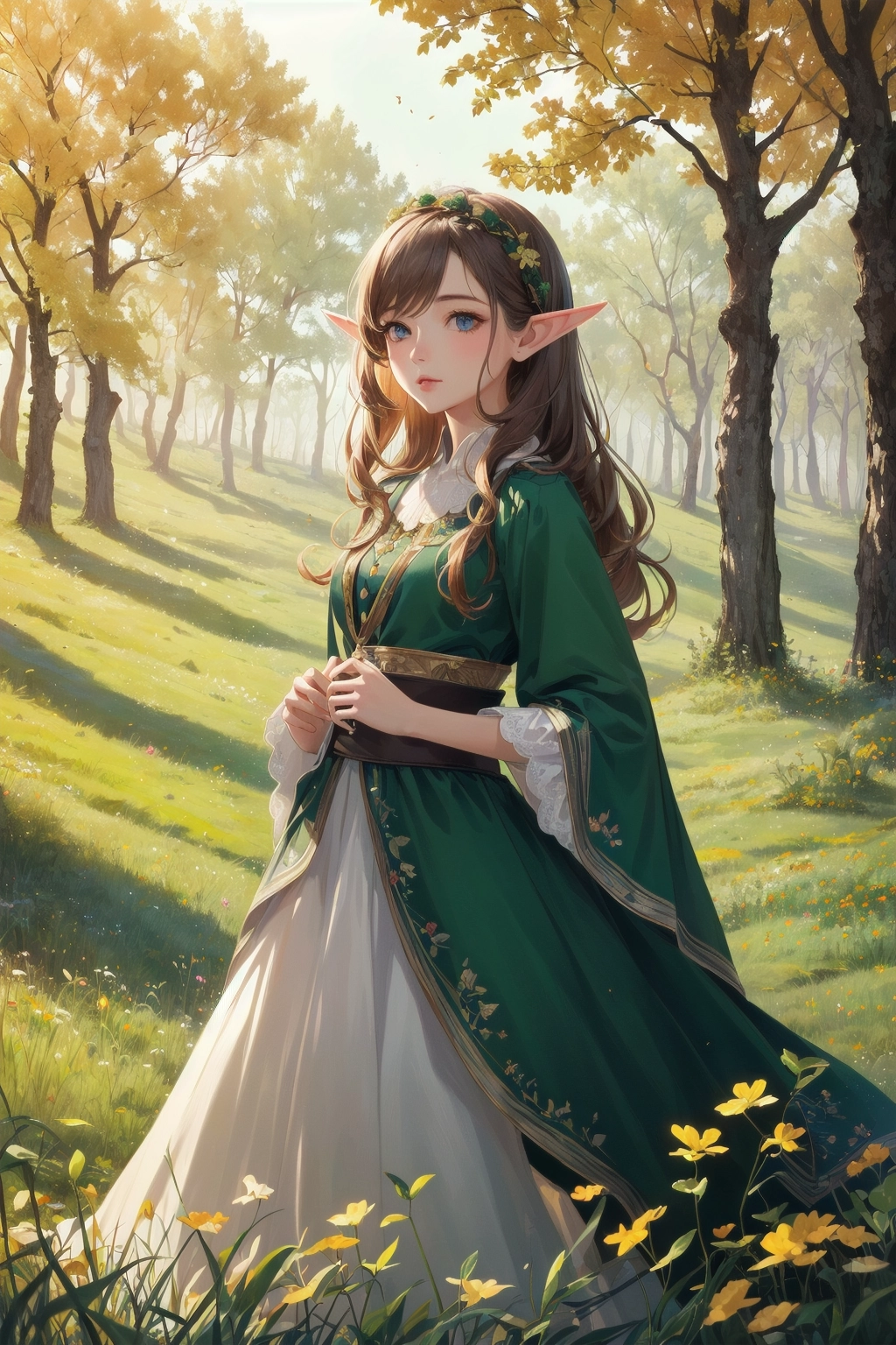 1girl elf meadow forest autumn outdoors detailed background