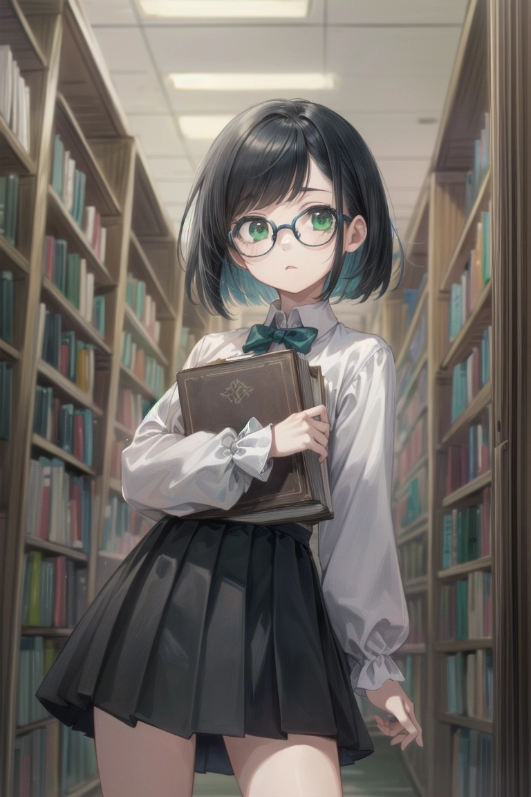 Girl with glasses choosing a book