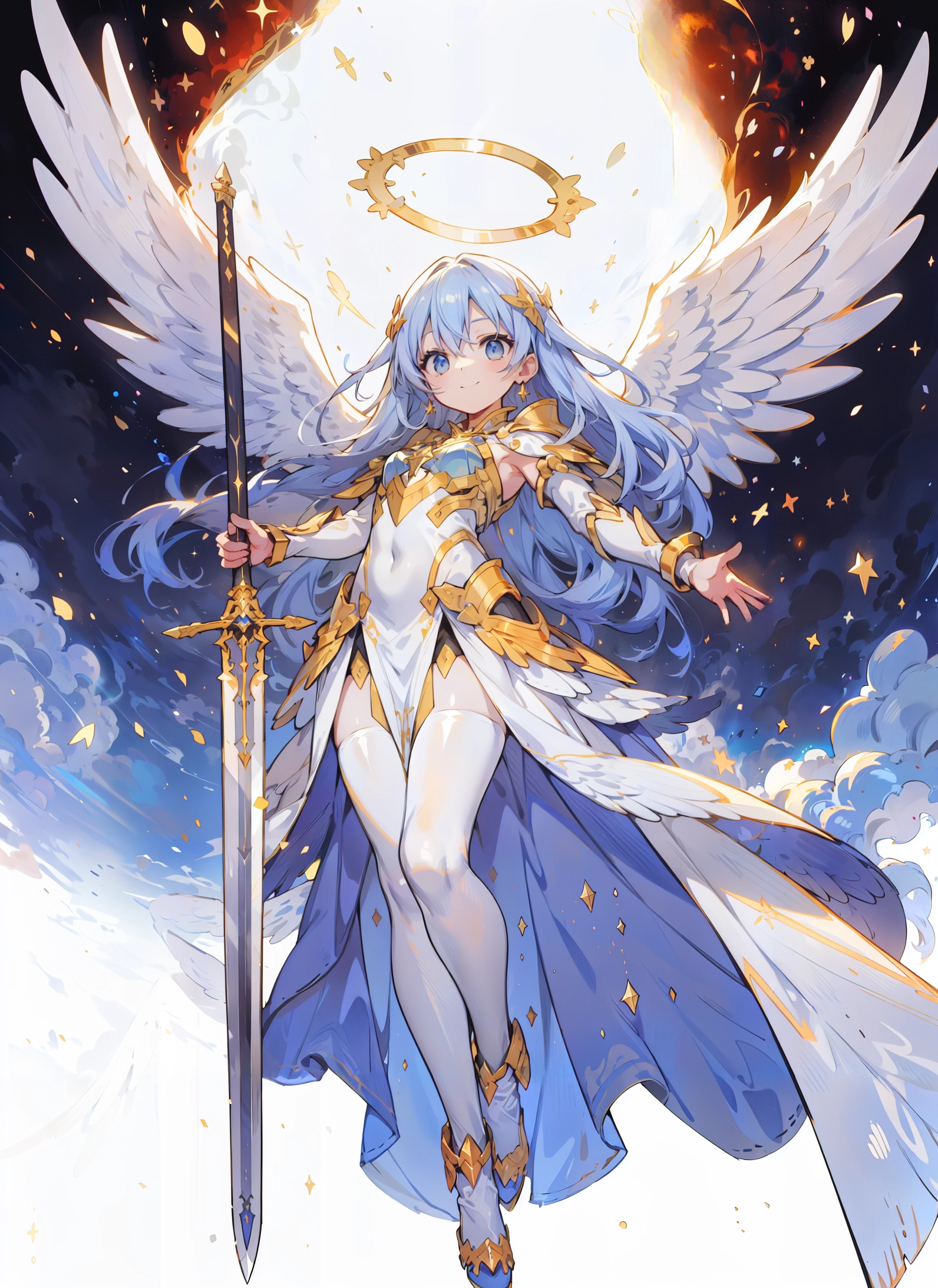 (masterpiece, best quality:1.3), illustration, (extream detailed), one girl, angel Descending