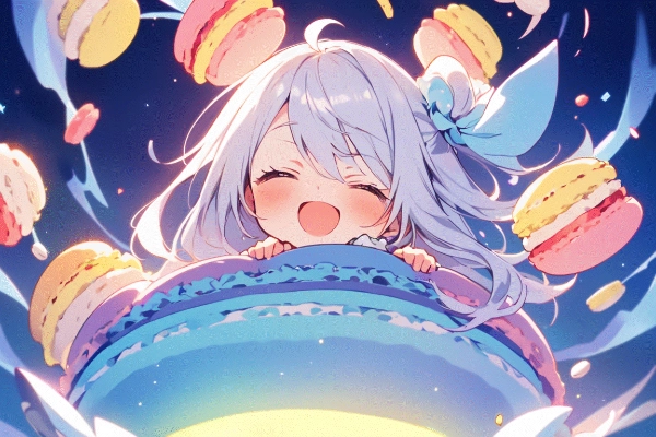 見えませんが、マカロンをハグしているという指定にするとこのポーズになりましたw