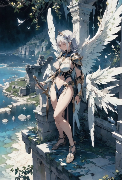 (masterpiece, best quality:1.3), illustration, (extream detailed), one girl, angel Descending