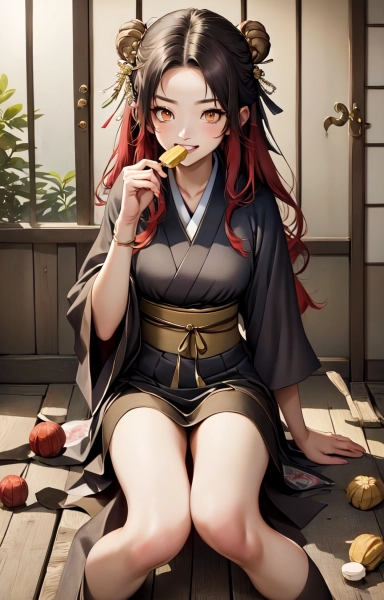 鬼っ子きび団子を食べる