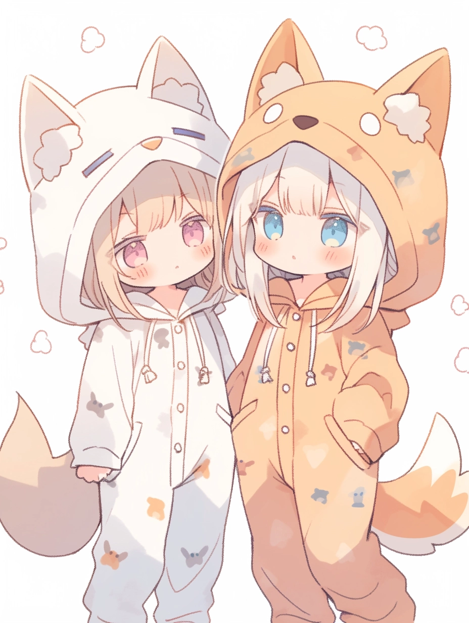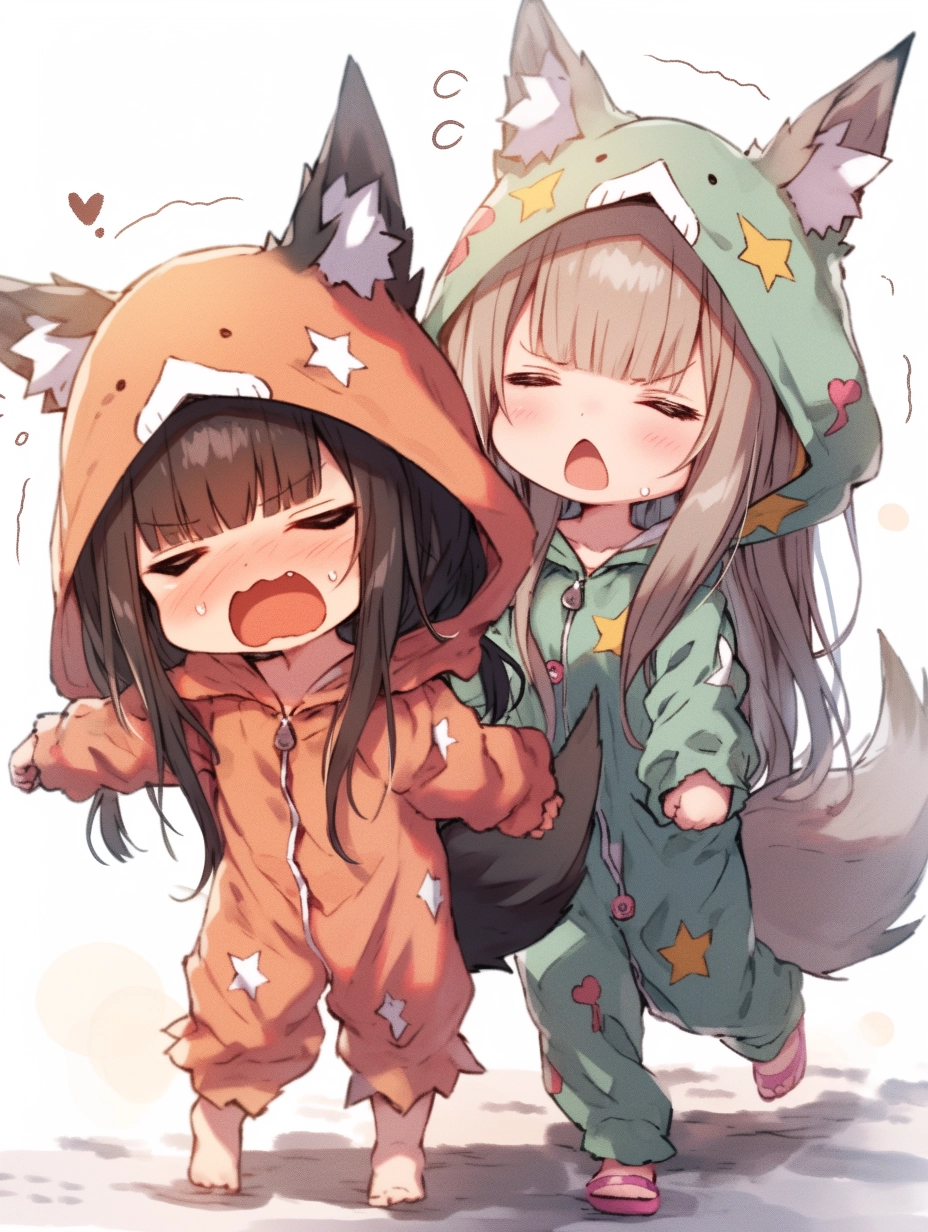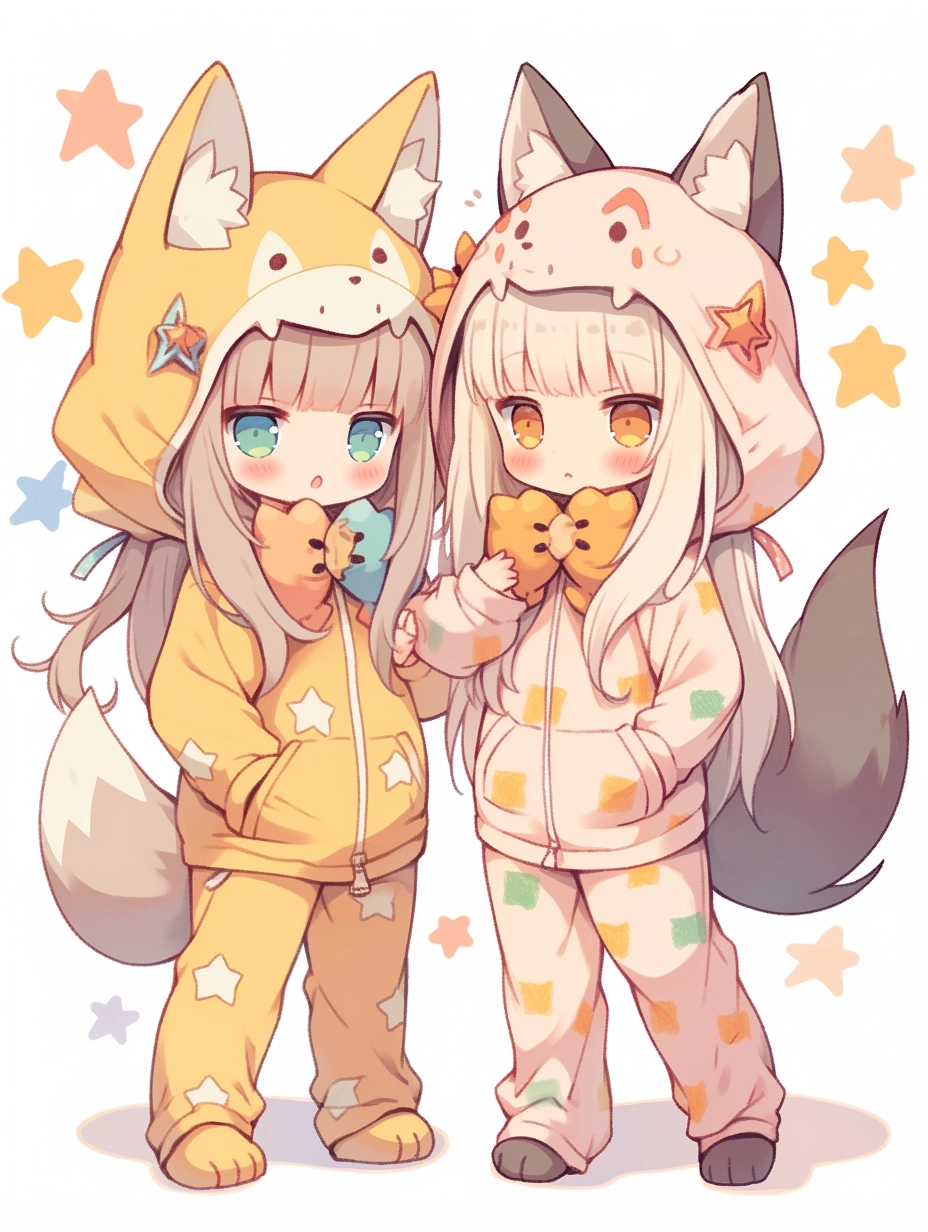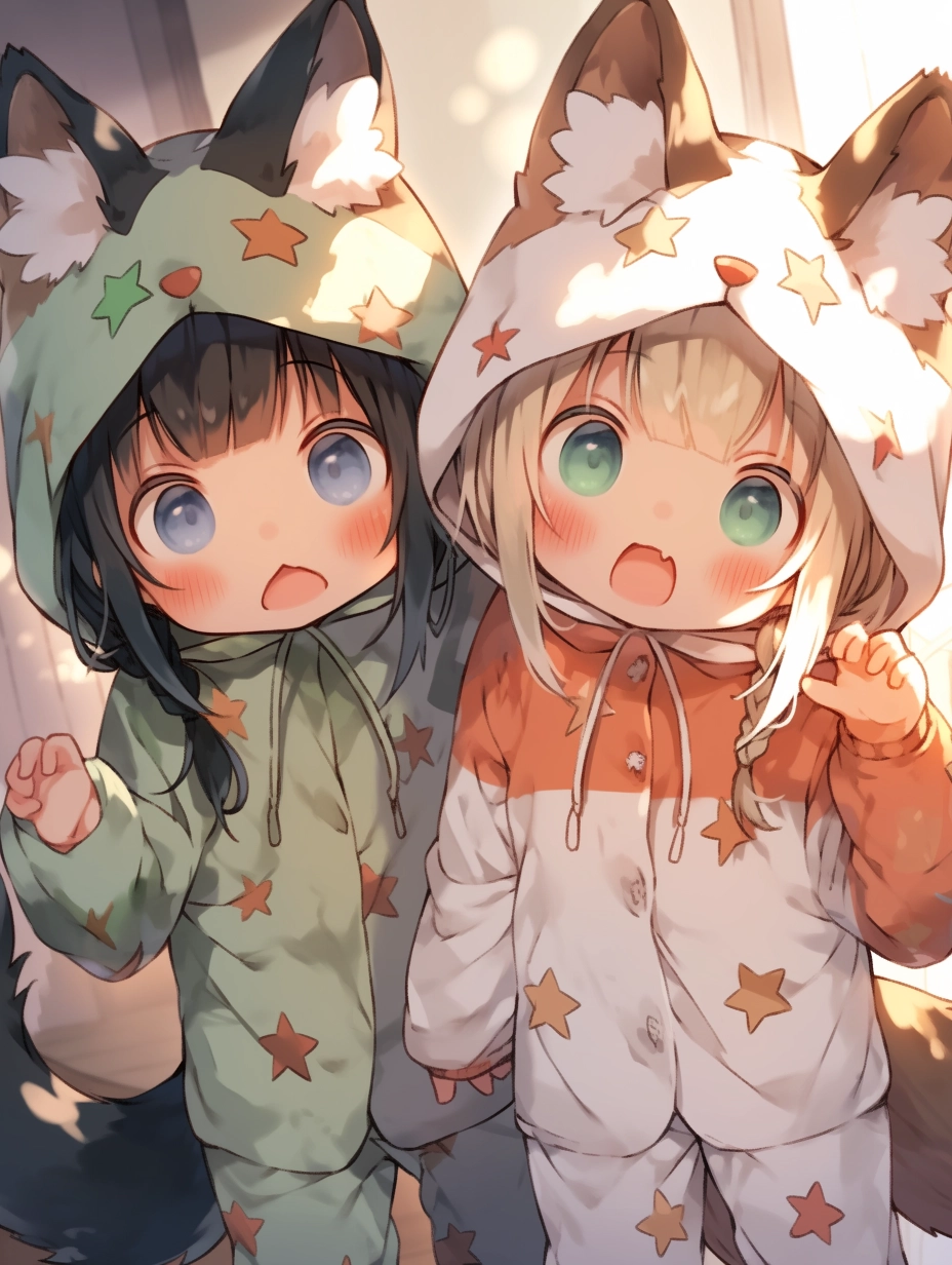 Fox-eared girls wearing pajamas