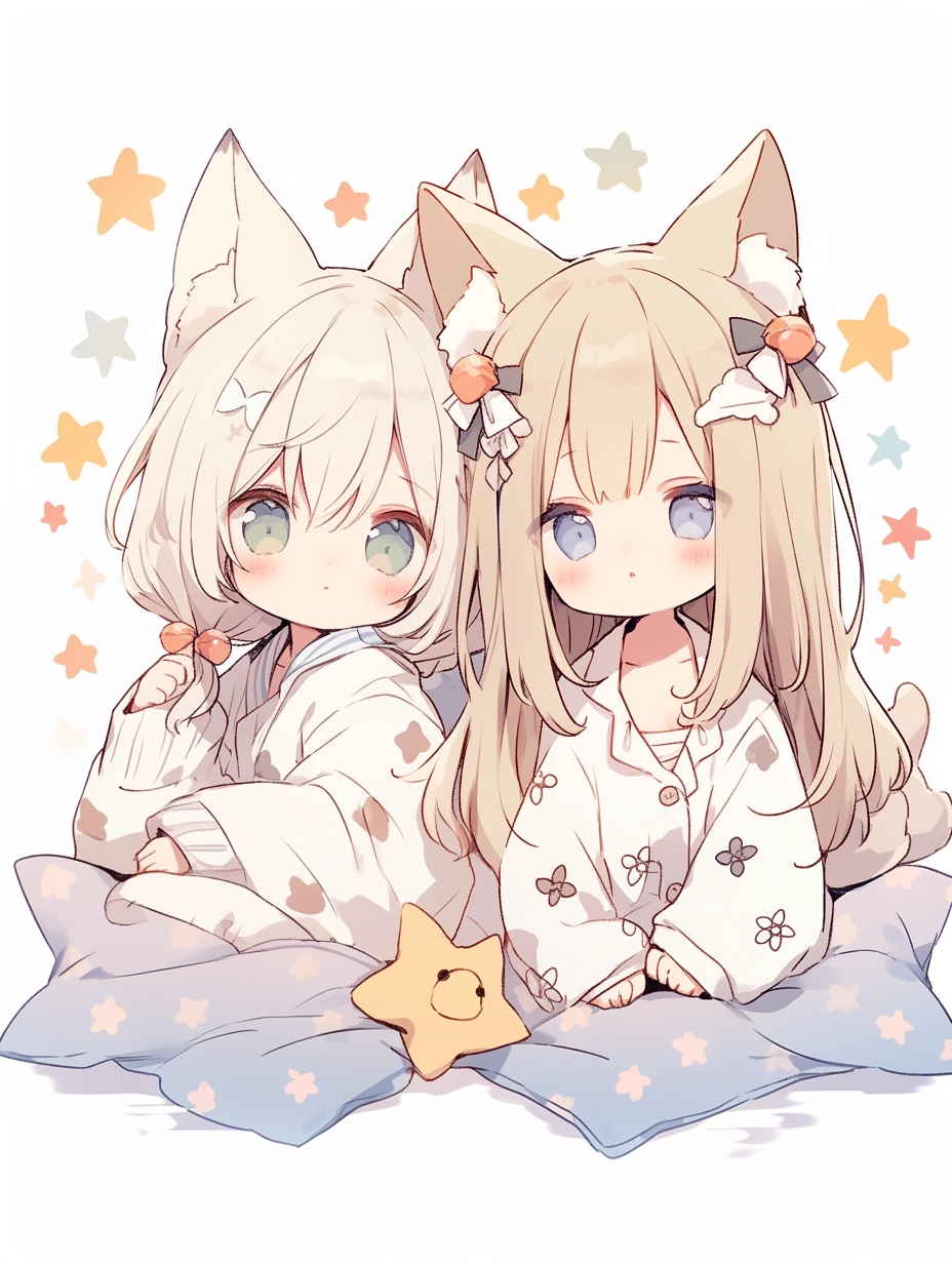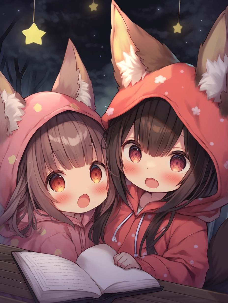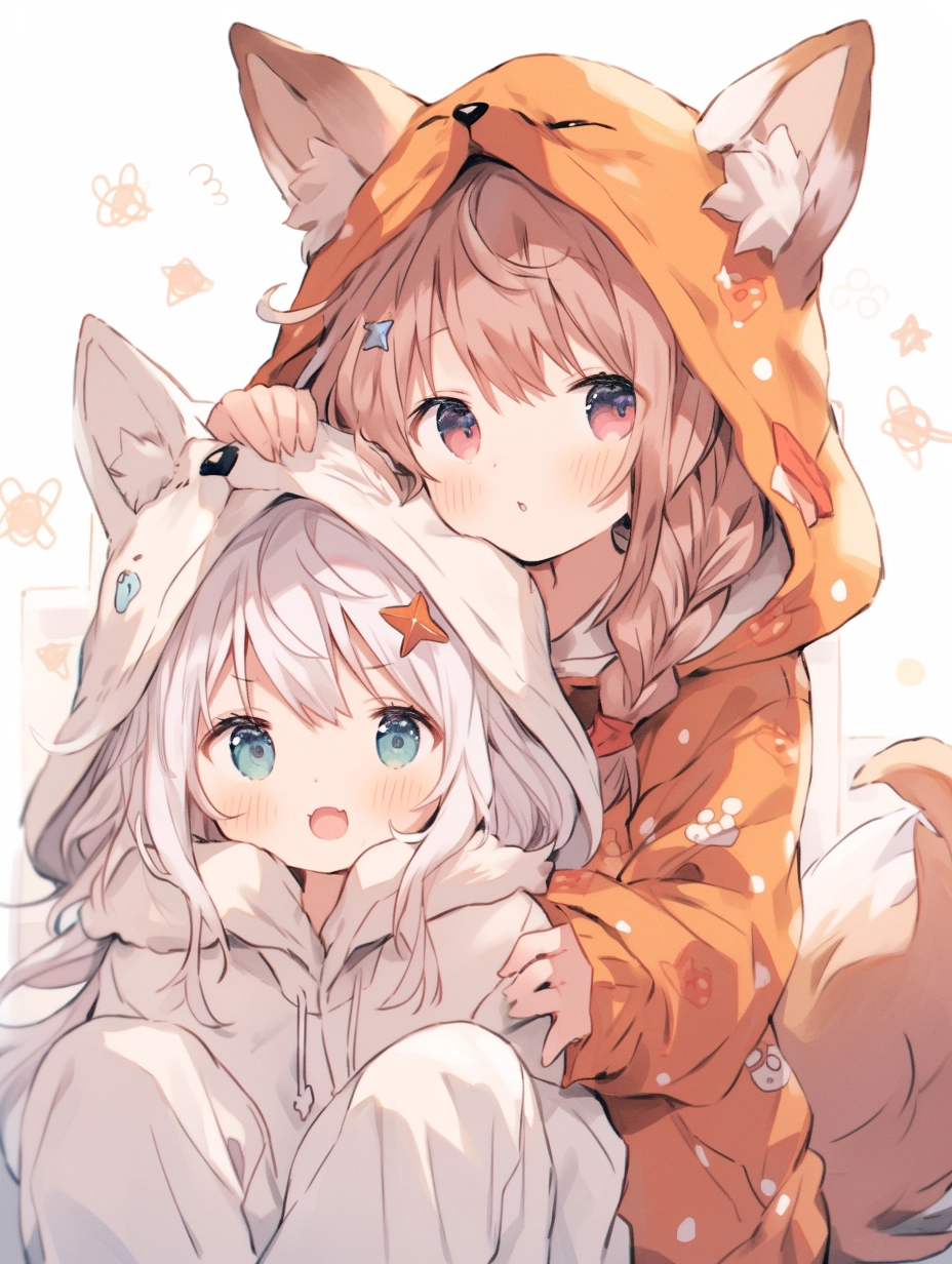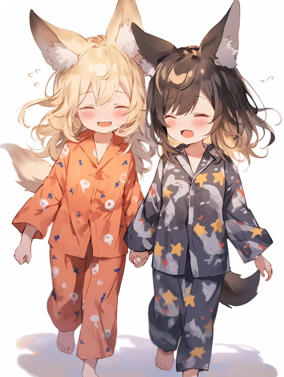 Fox-eared girls wearing pajamas