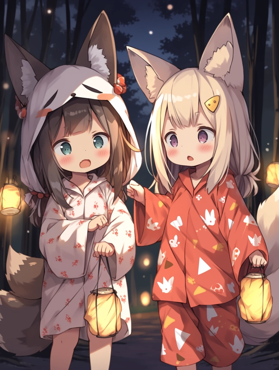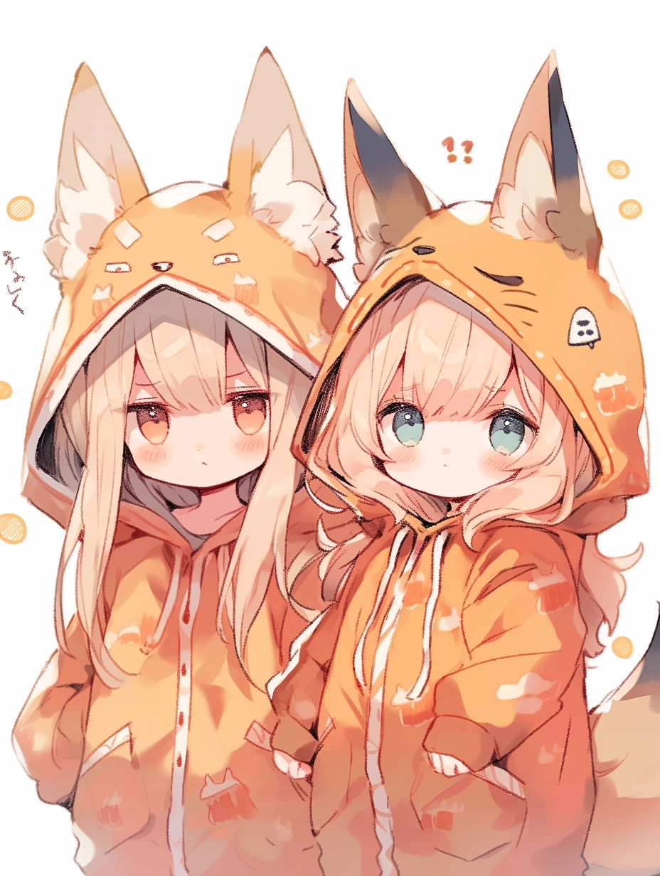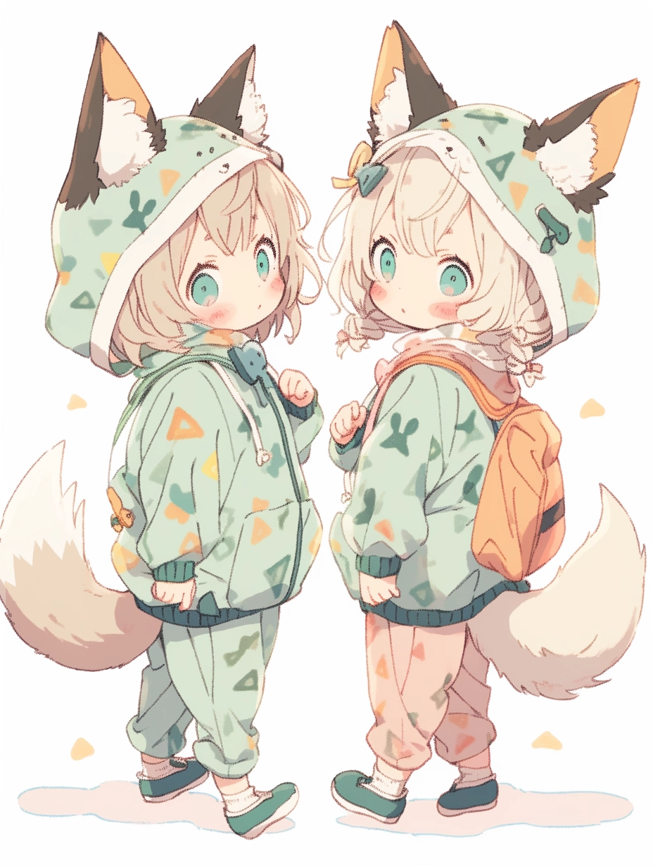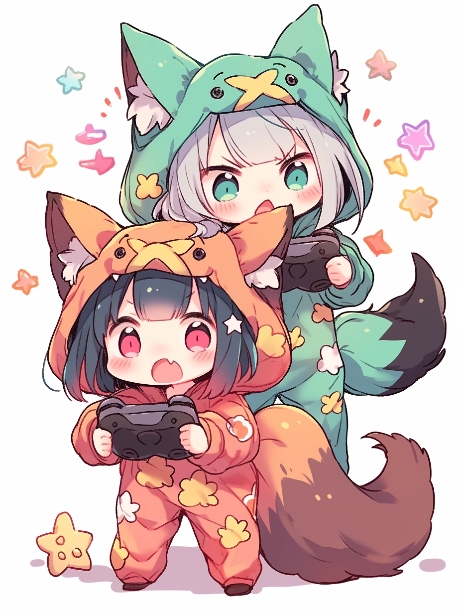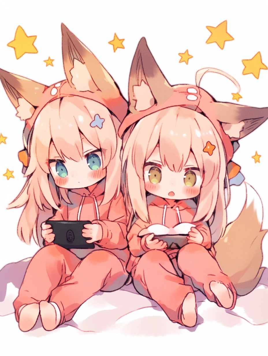 Fox-eared girls wearing pajamas