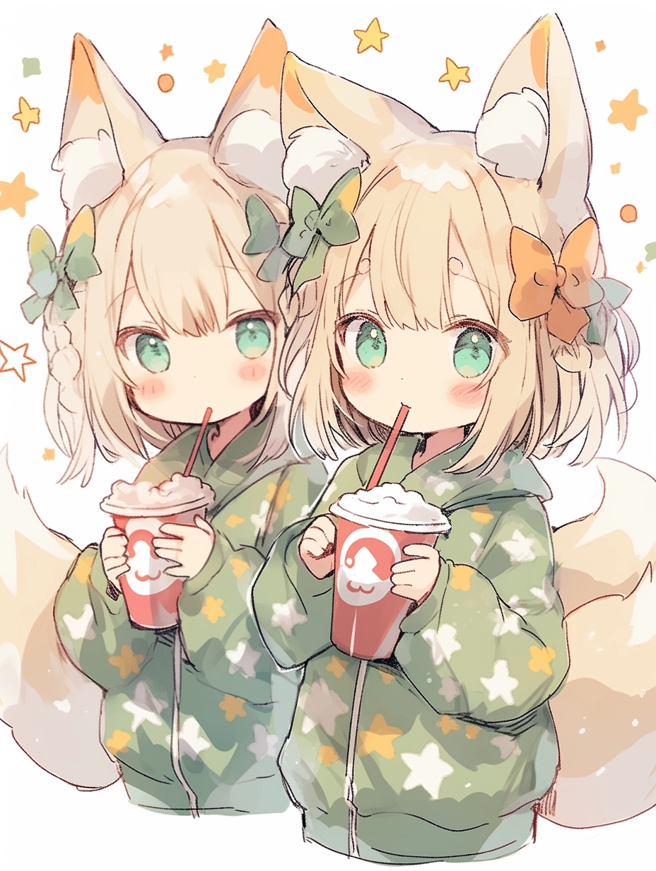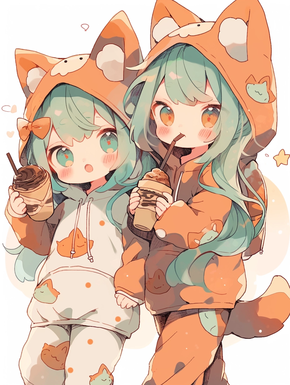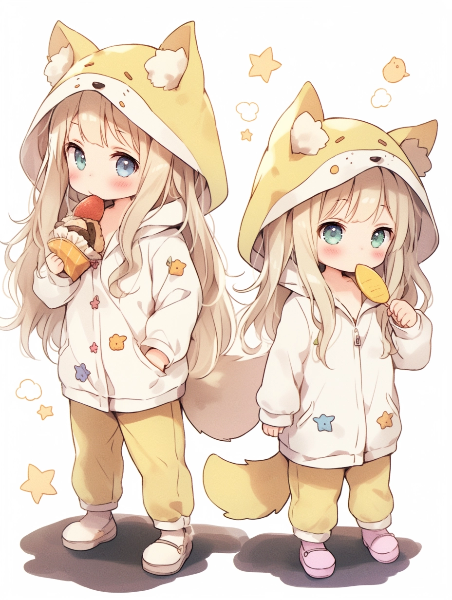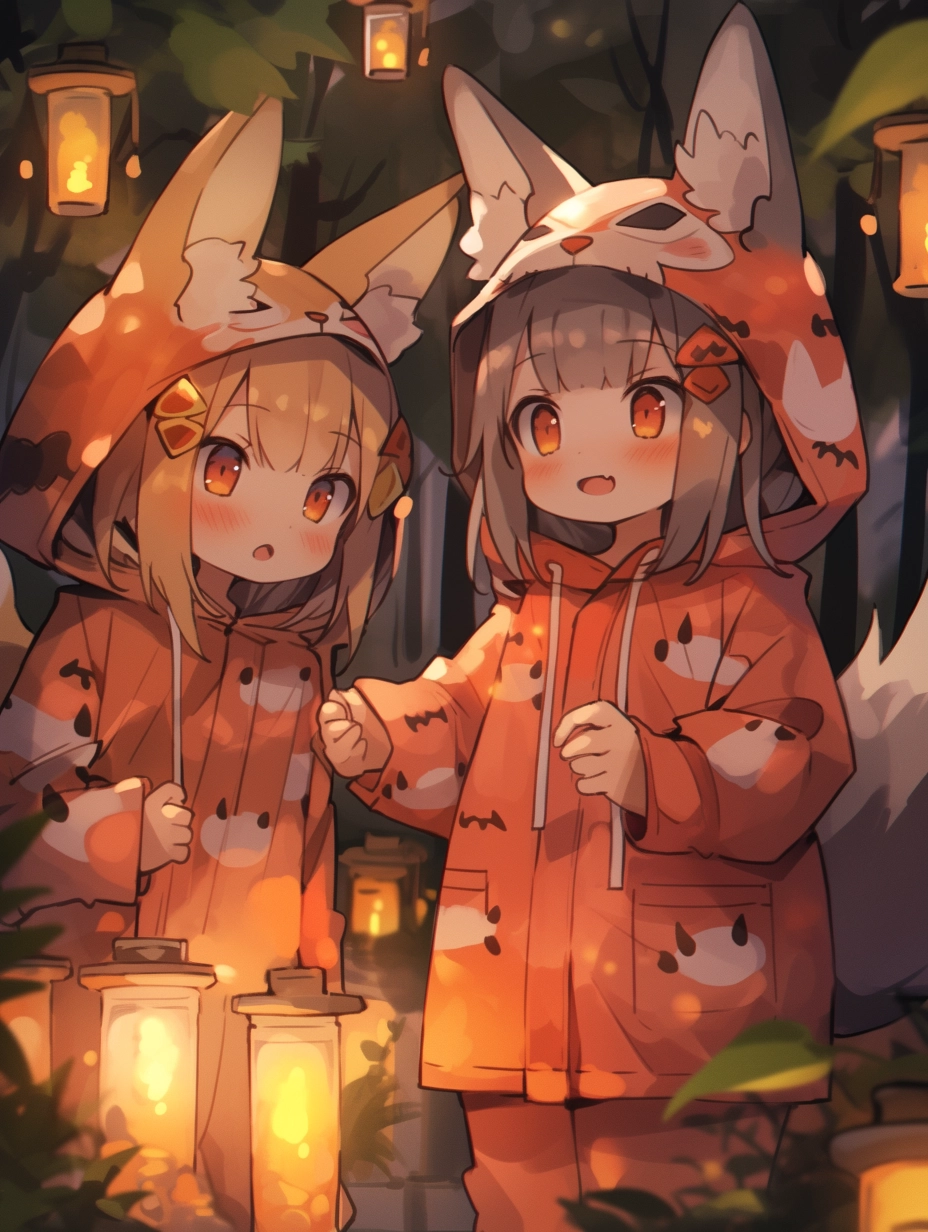 Fox-eared girls wearing pajamas
