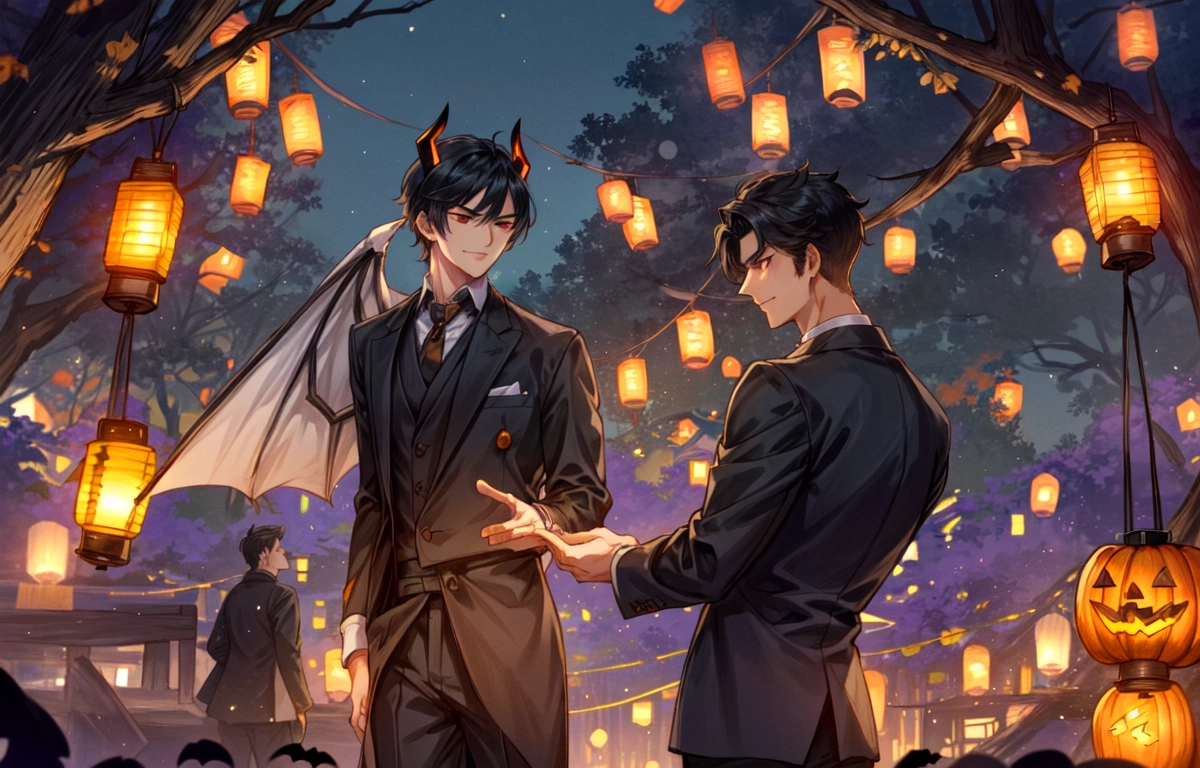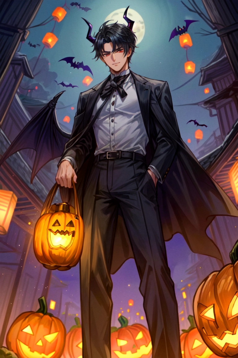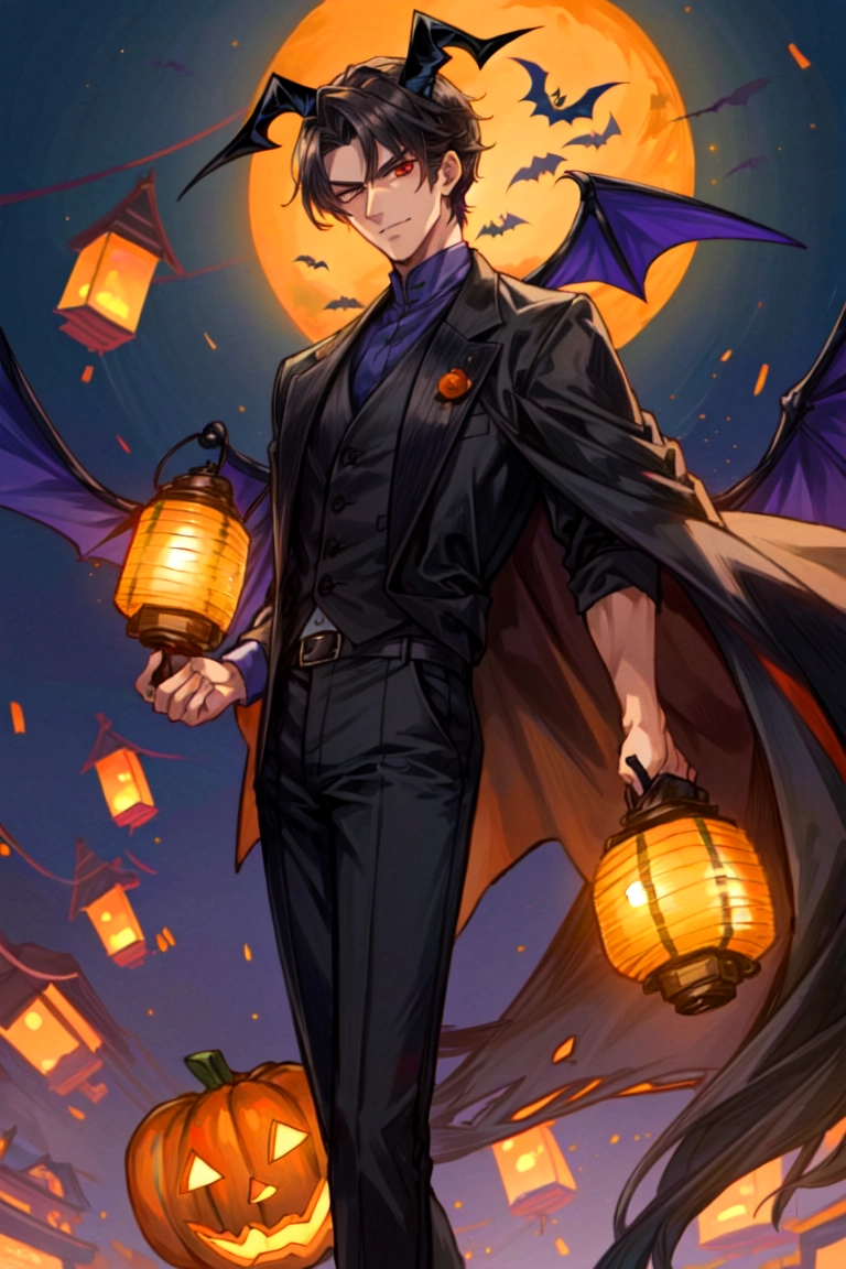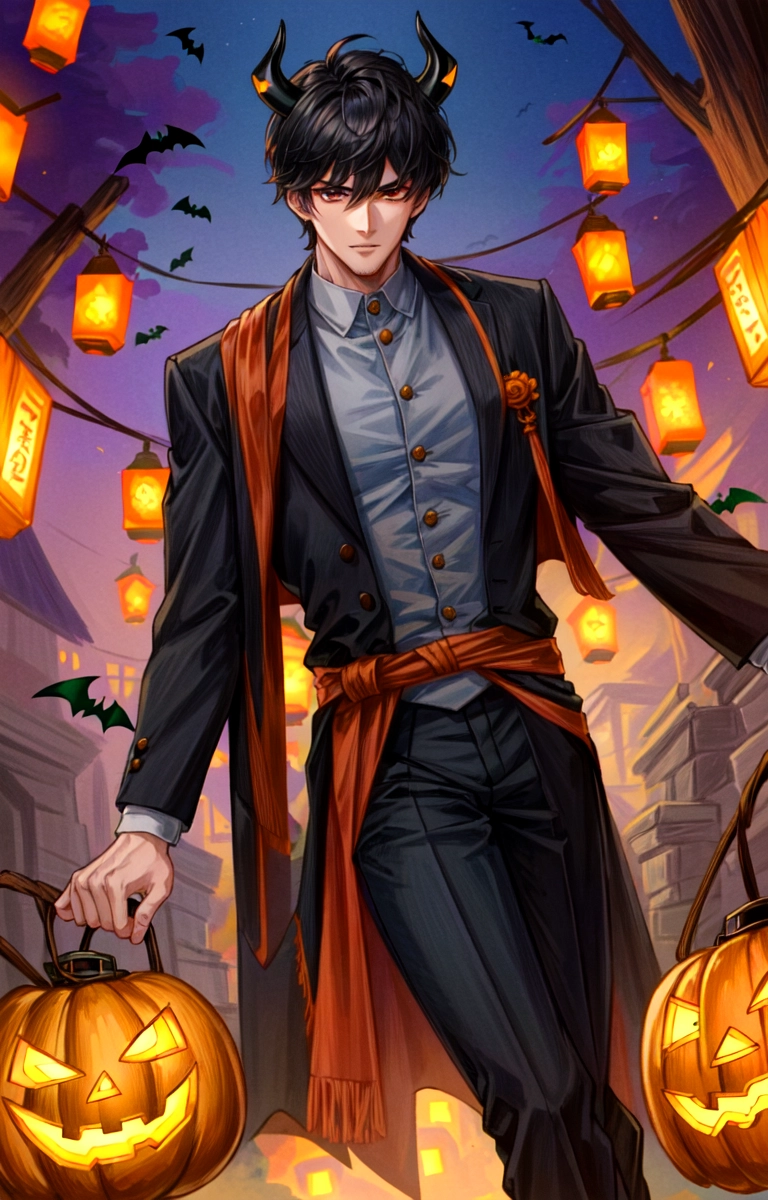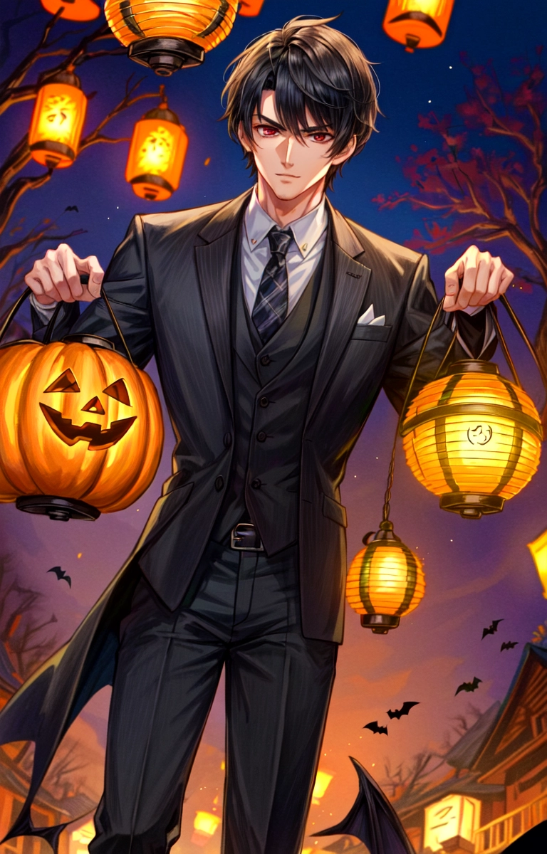 あかりが灯った街にいる、悪魔な黒髪短髪男性★(9枚)