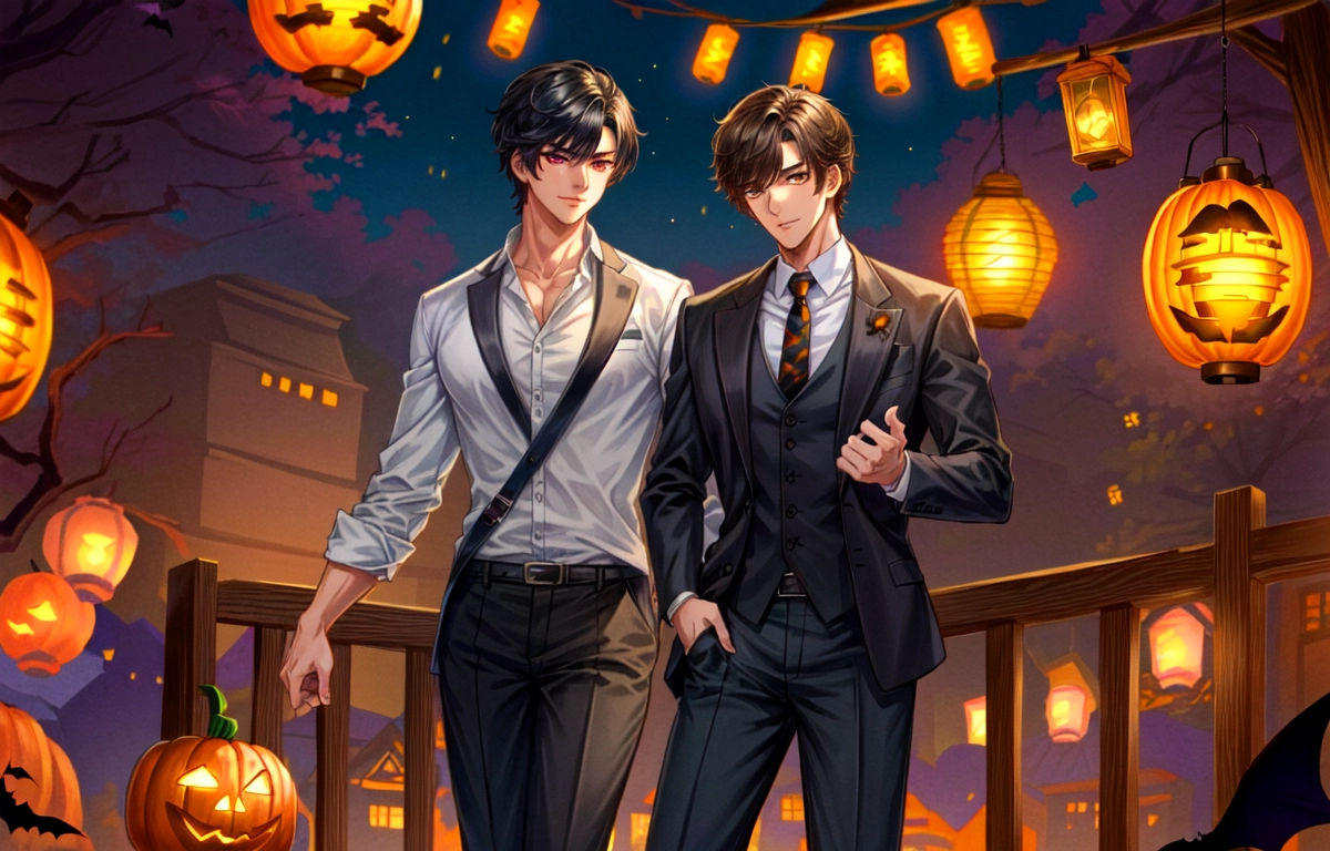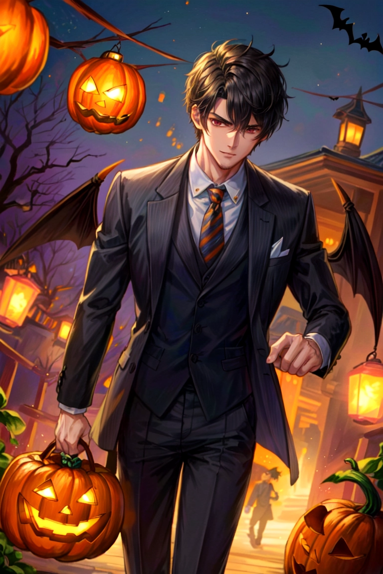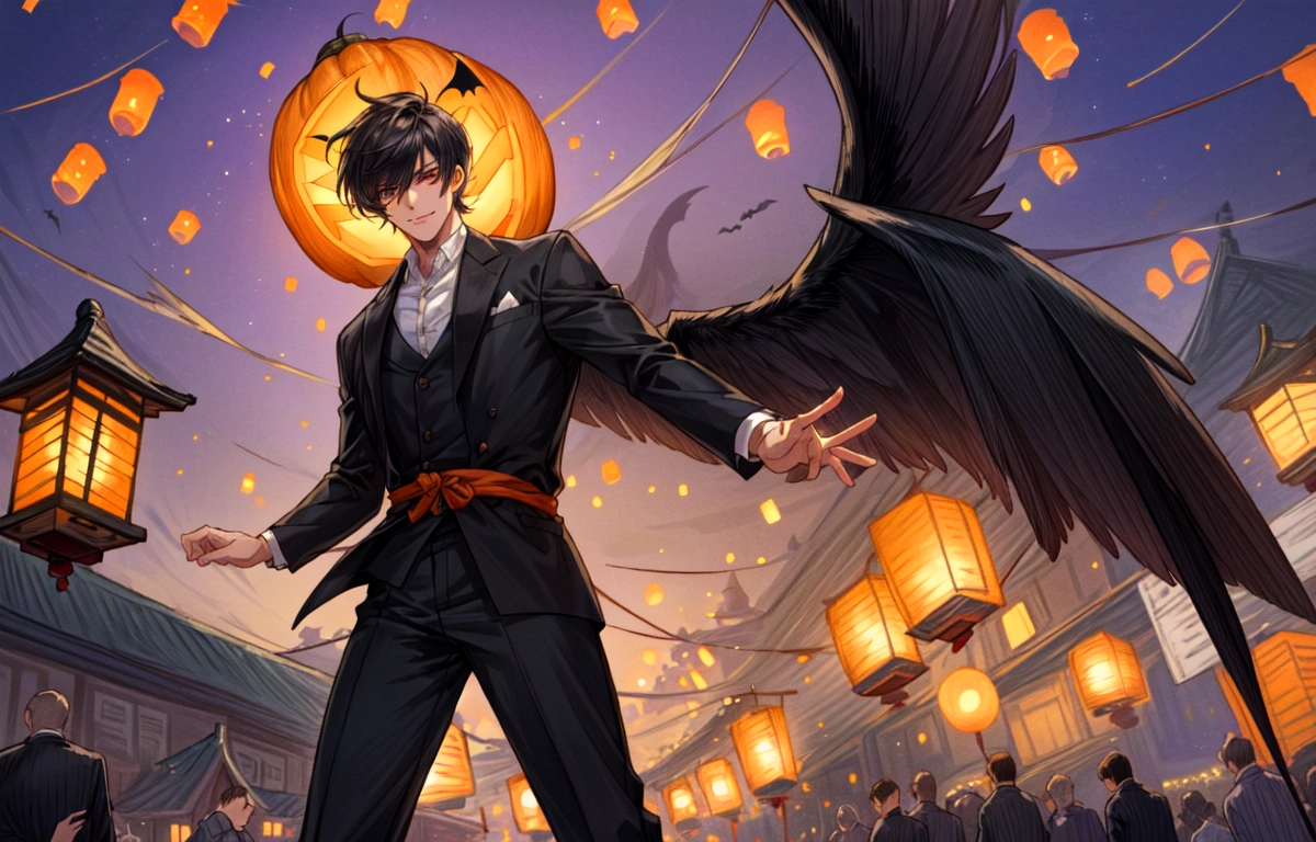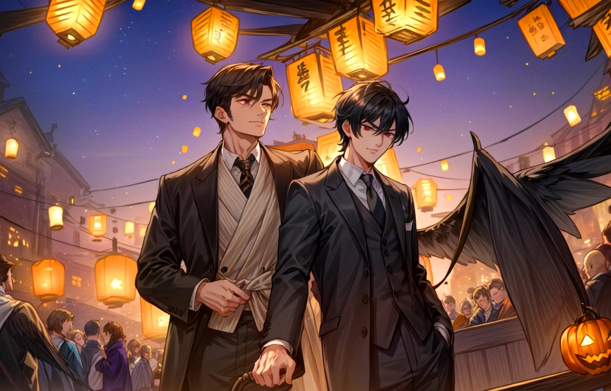 あかりが灯った街にいる、悪魔な黒髪短髪男性★(9枚)