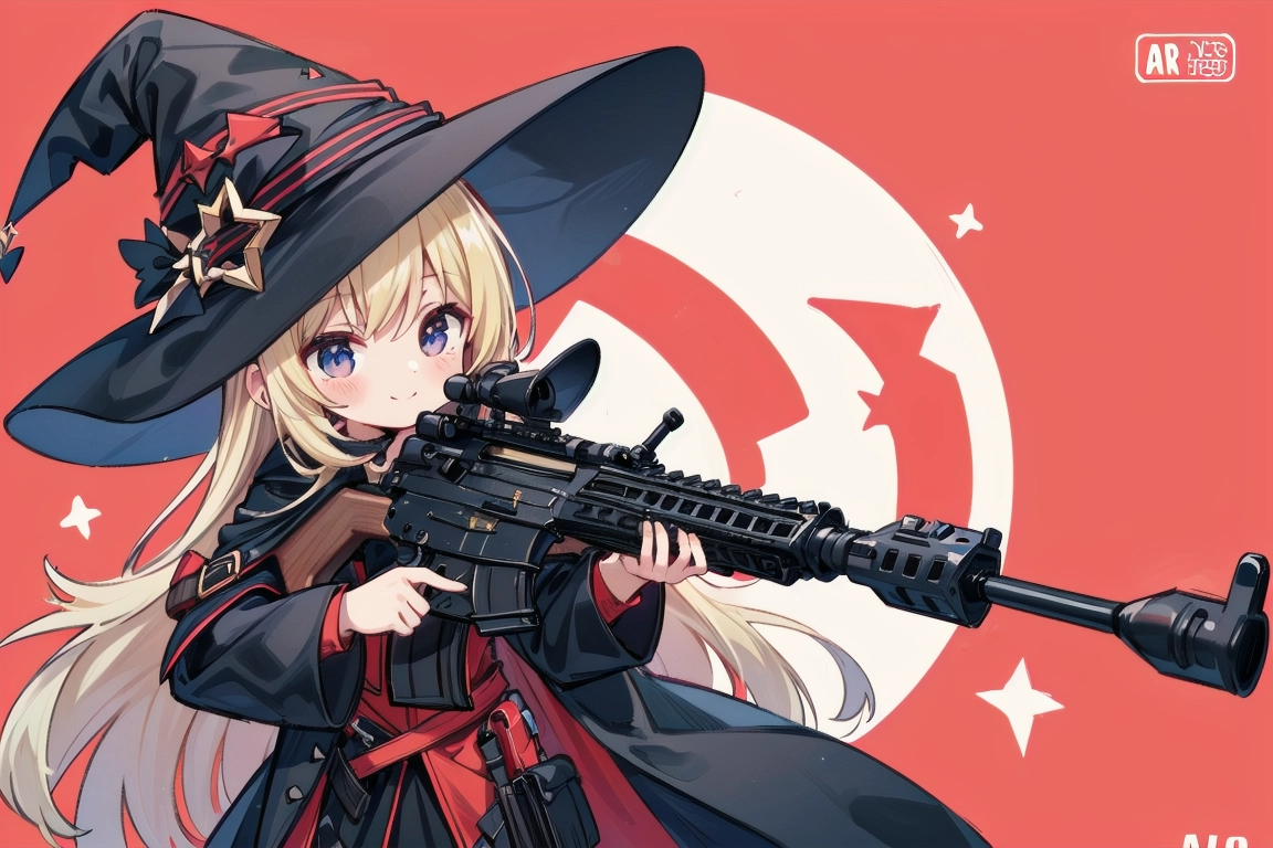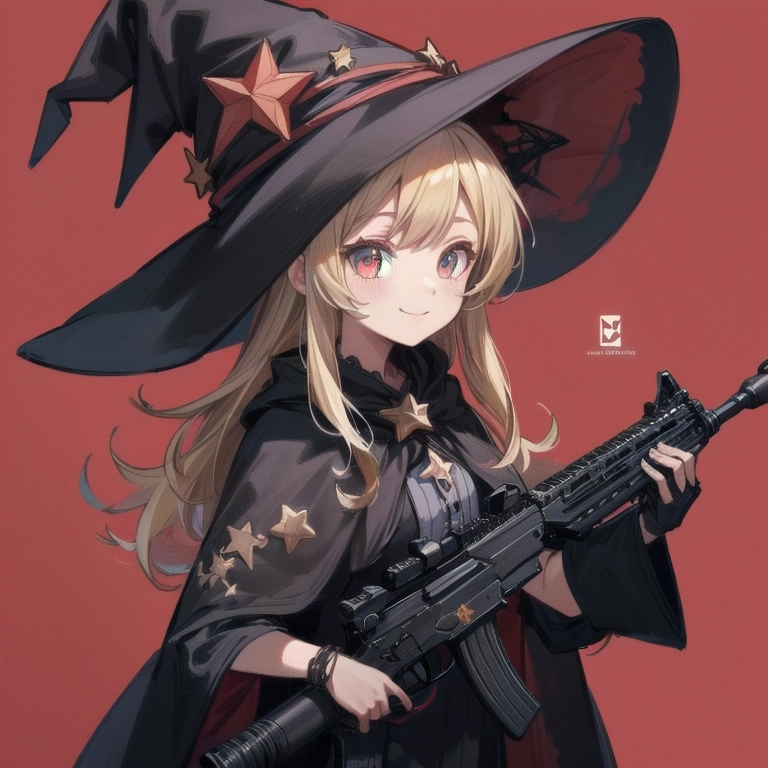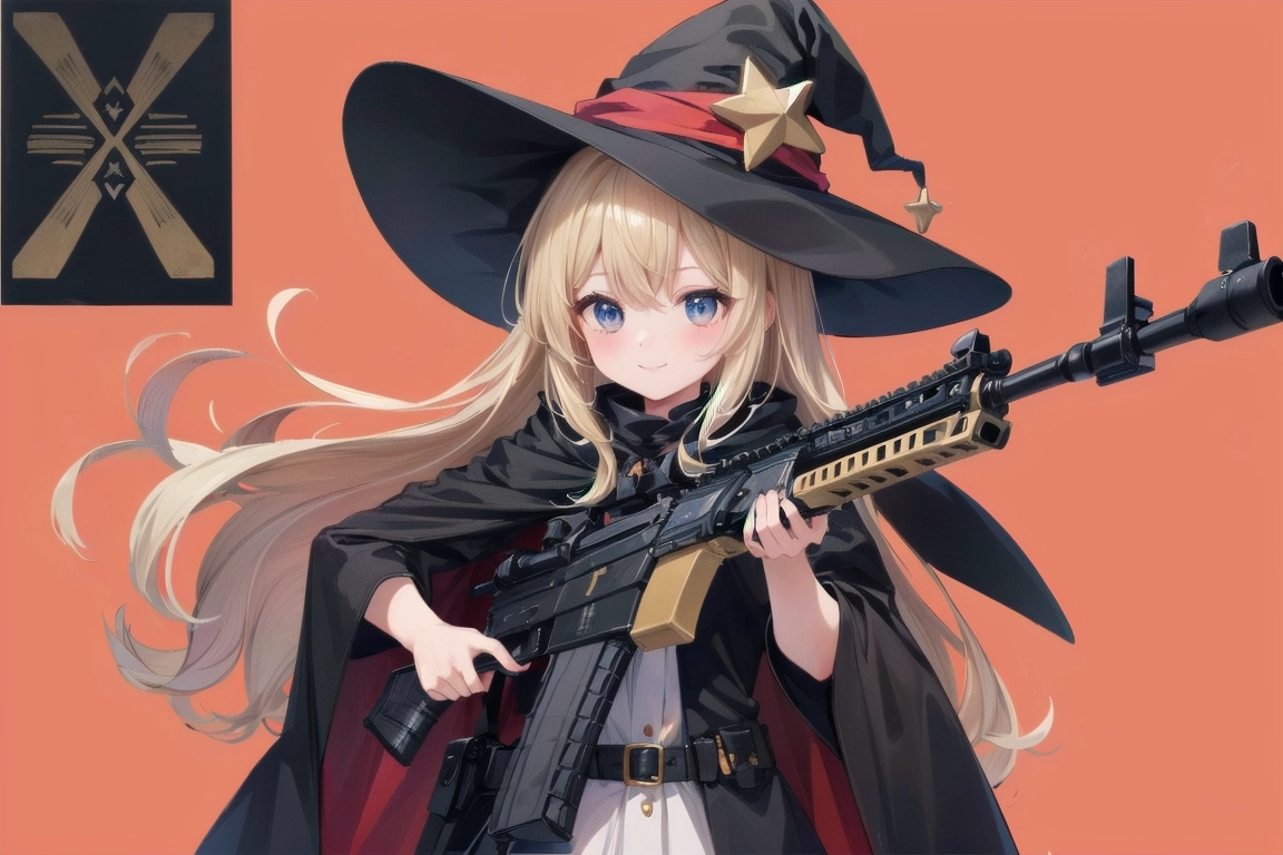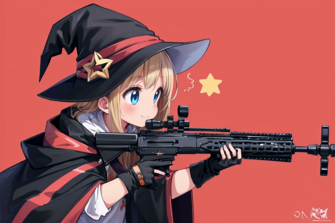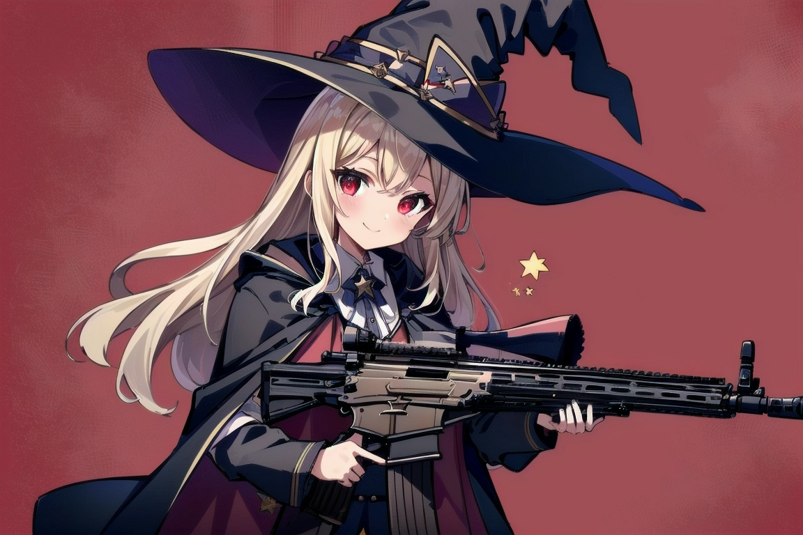 魔女と銃@赤い背景 習作②