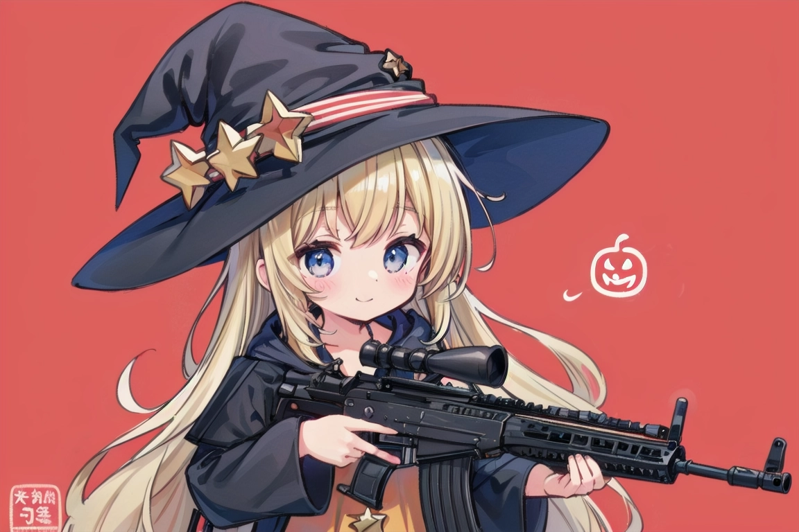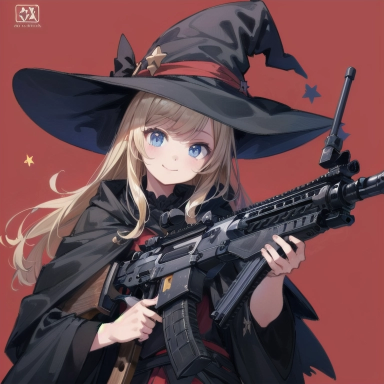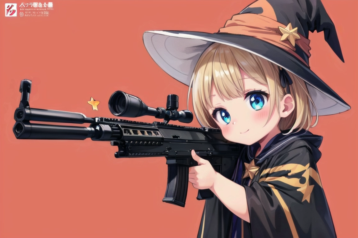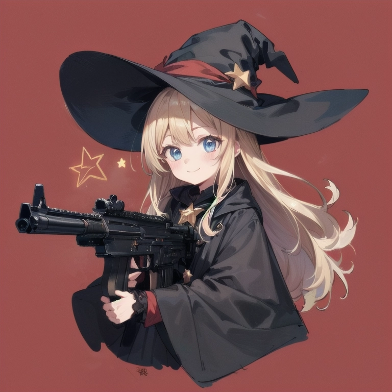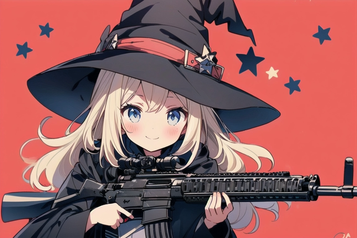 魔女と銃@赤い背景 習作②