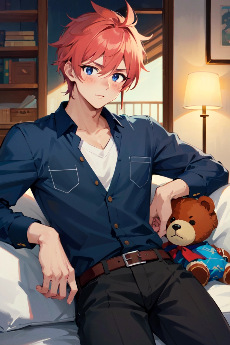 Relaxing man and teddy bear