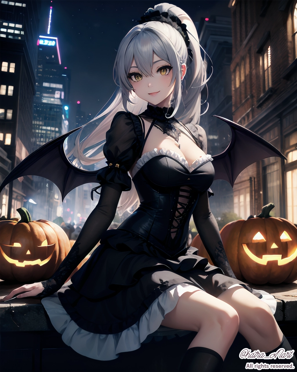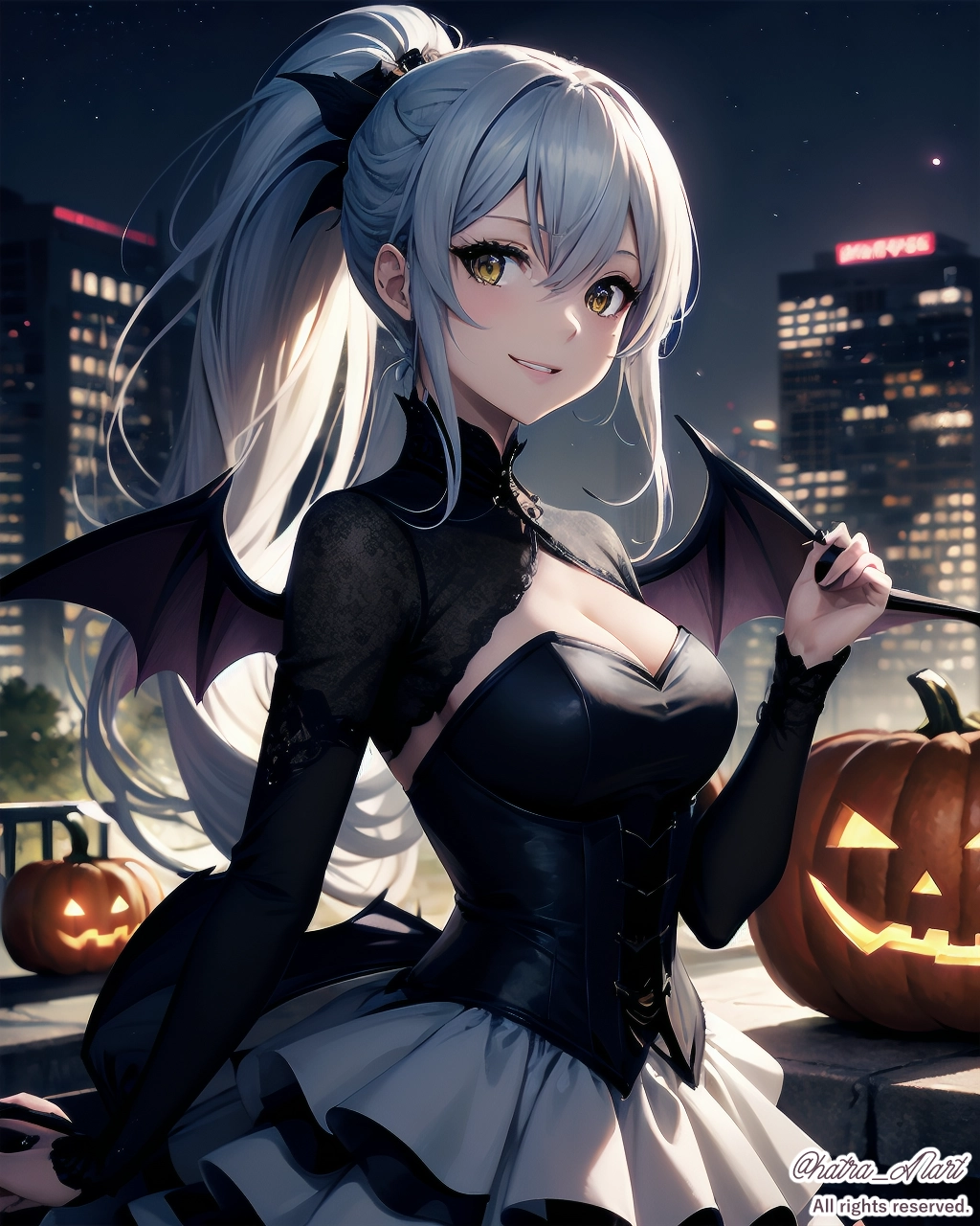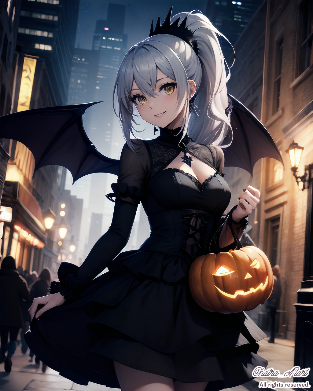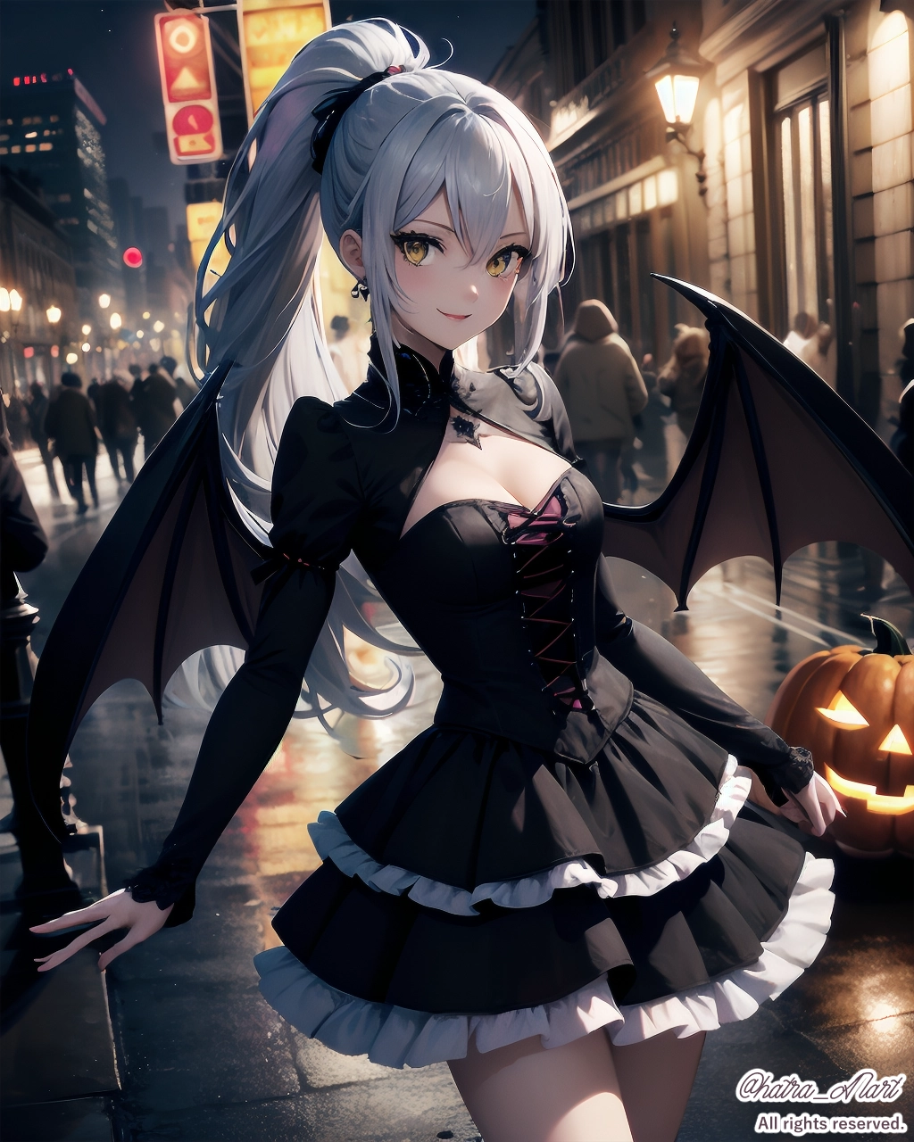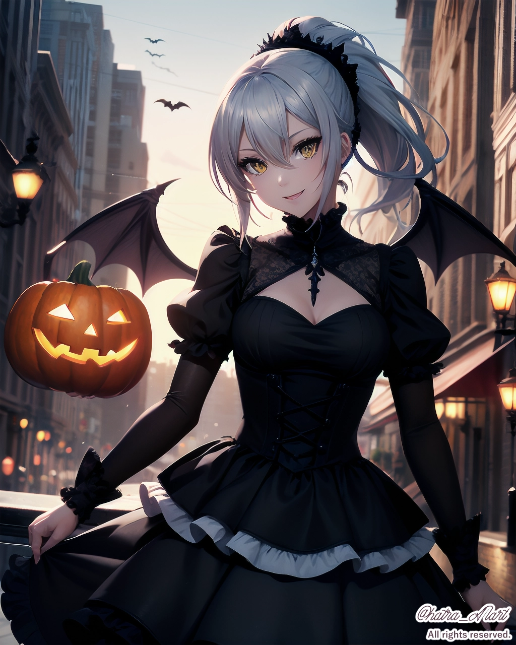 ゴスロリ衣装に悪魔の羽とカボチャで、ハロウィンっぽくしました。