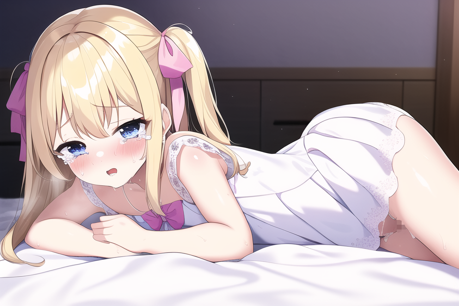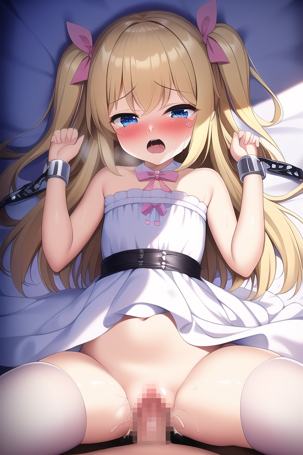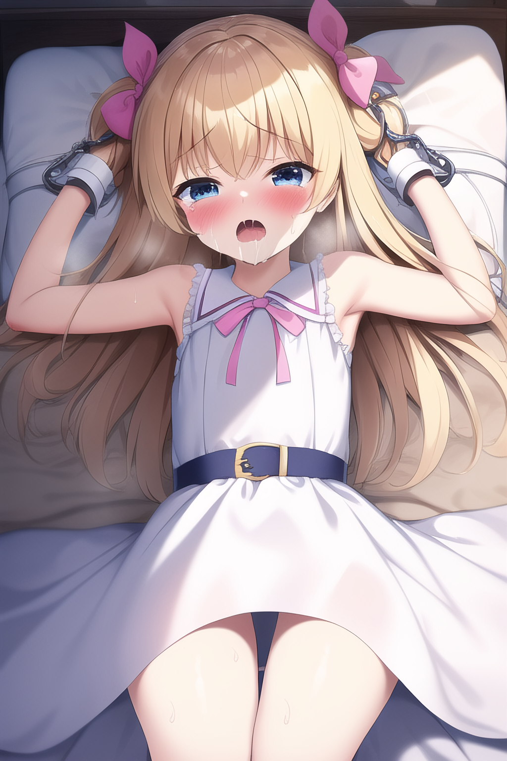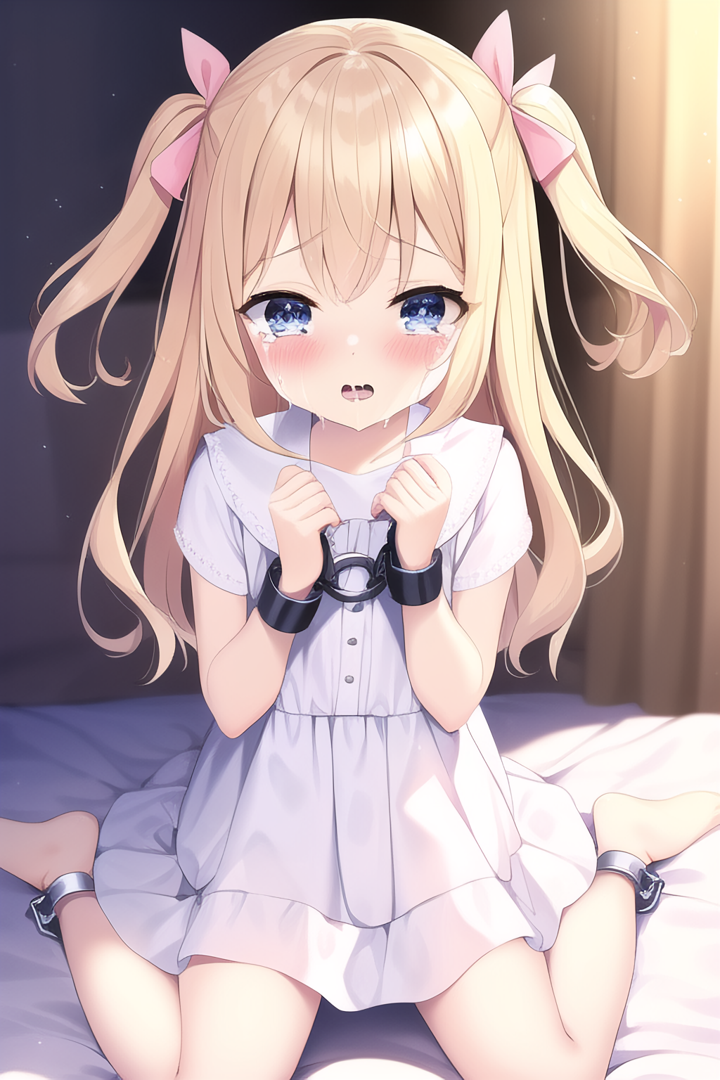 A situation where a blonde girl is forced