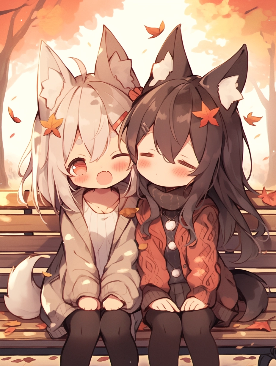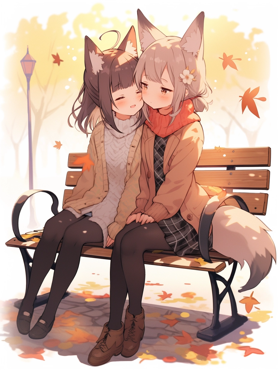 Autumn leaves and fox girl