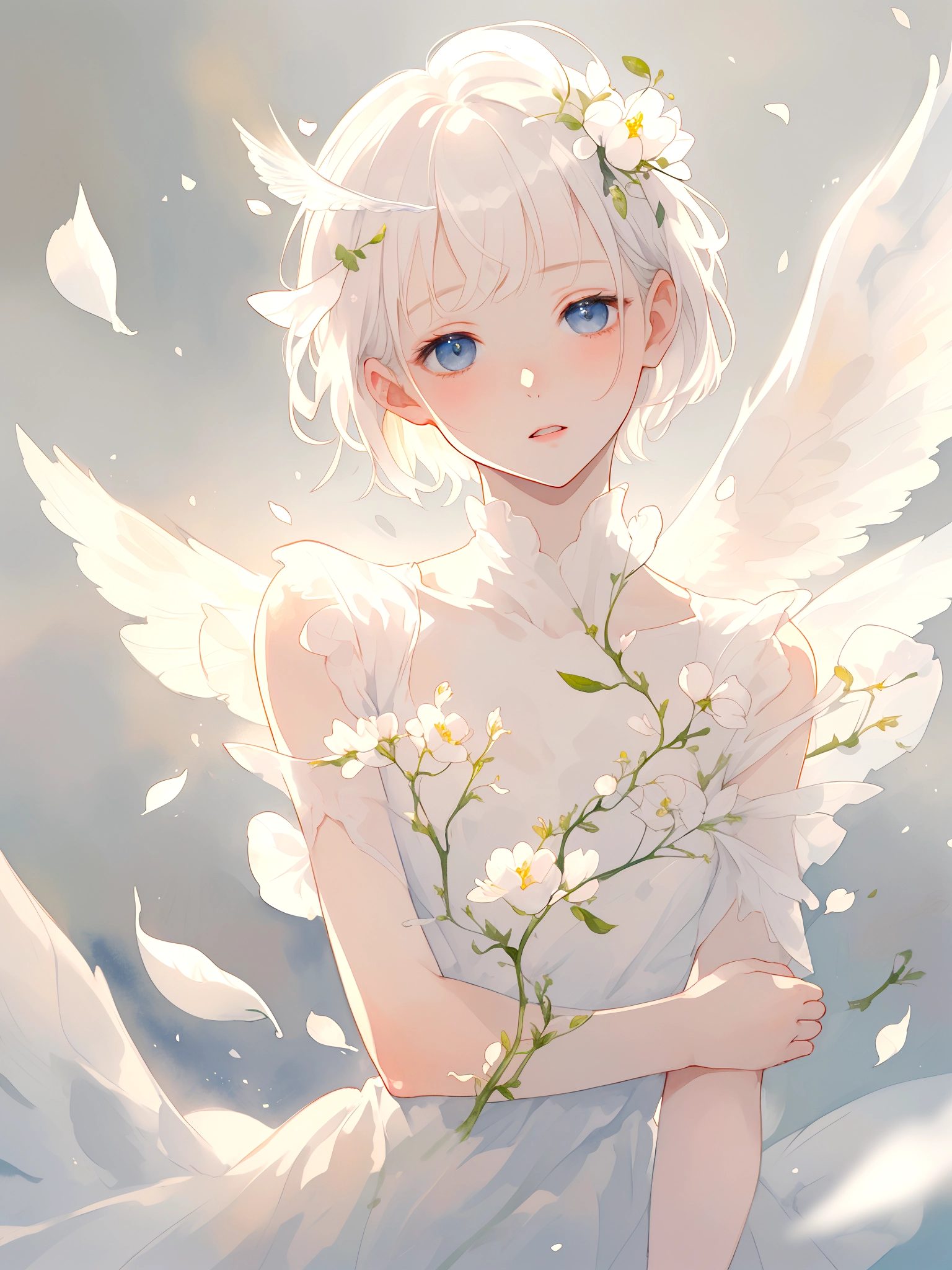 (masterpiece, best quality:1.3), illustration, (extream detailed), one girl, angel Descending