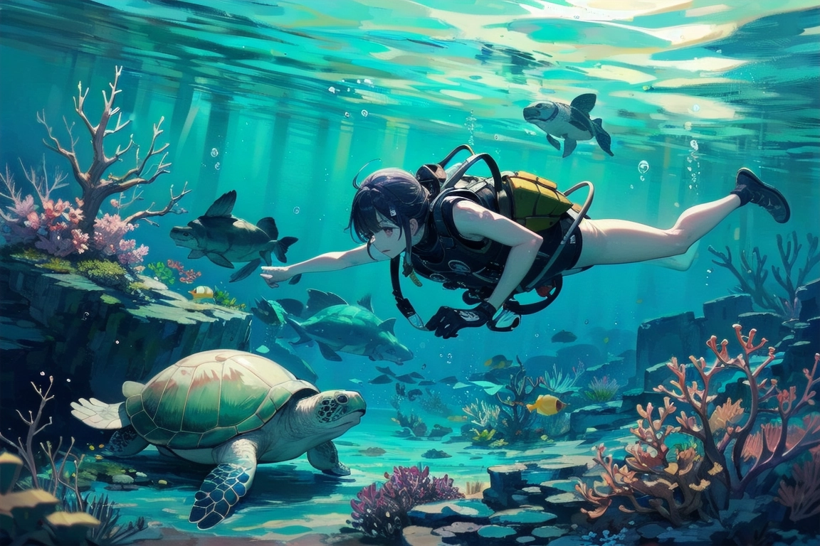 海亀とダイバー