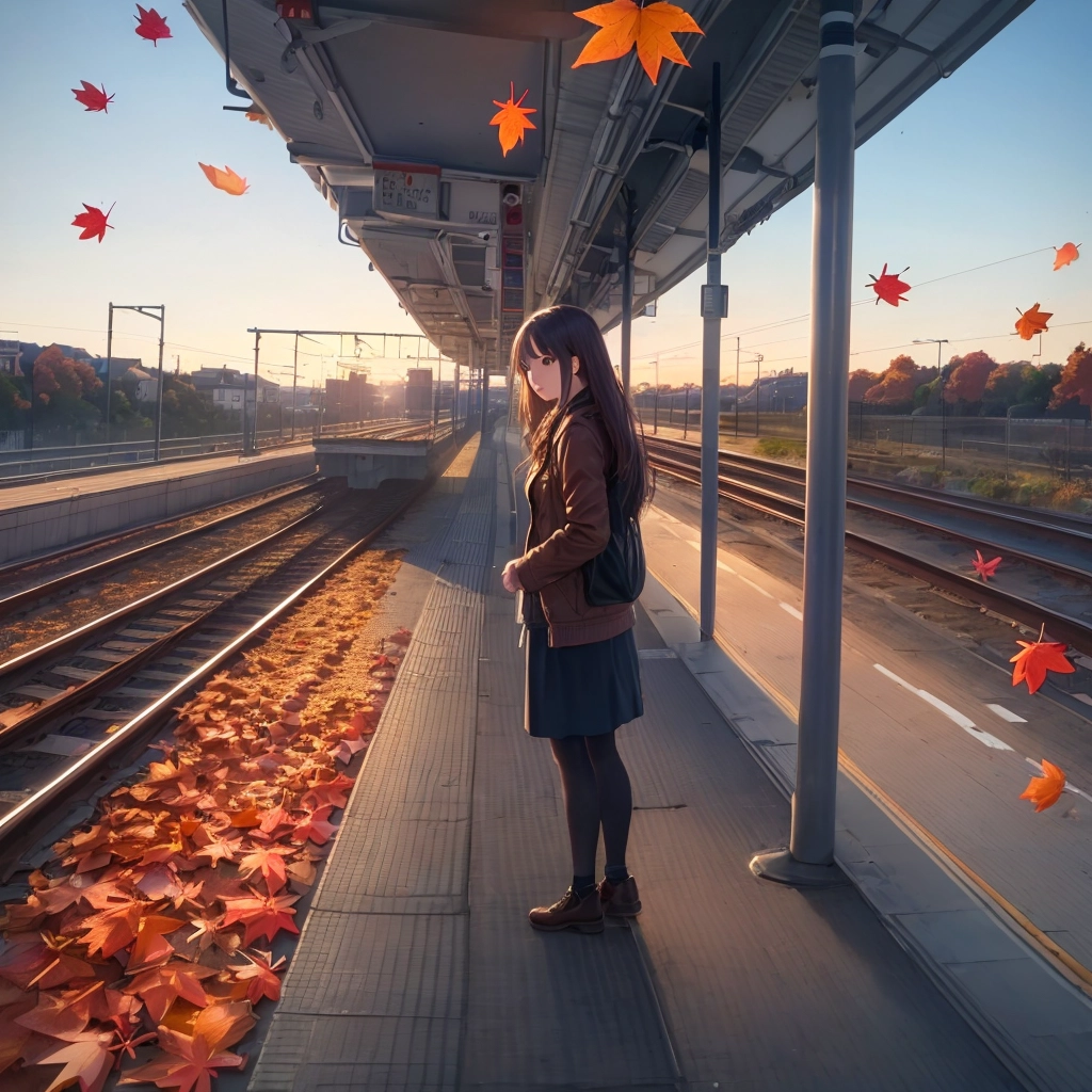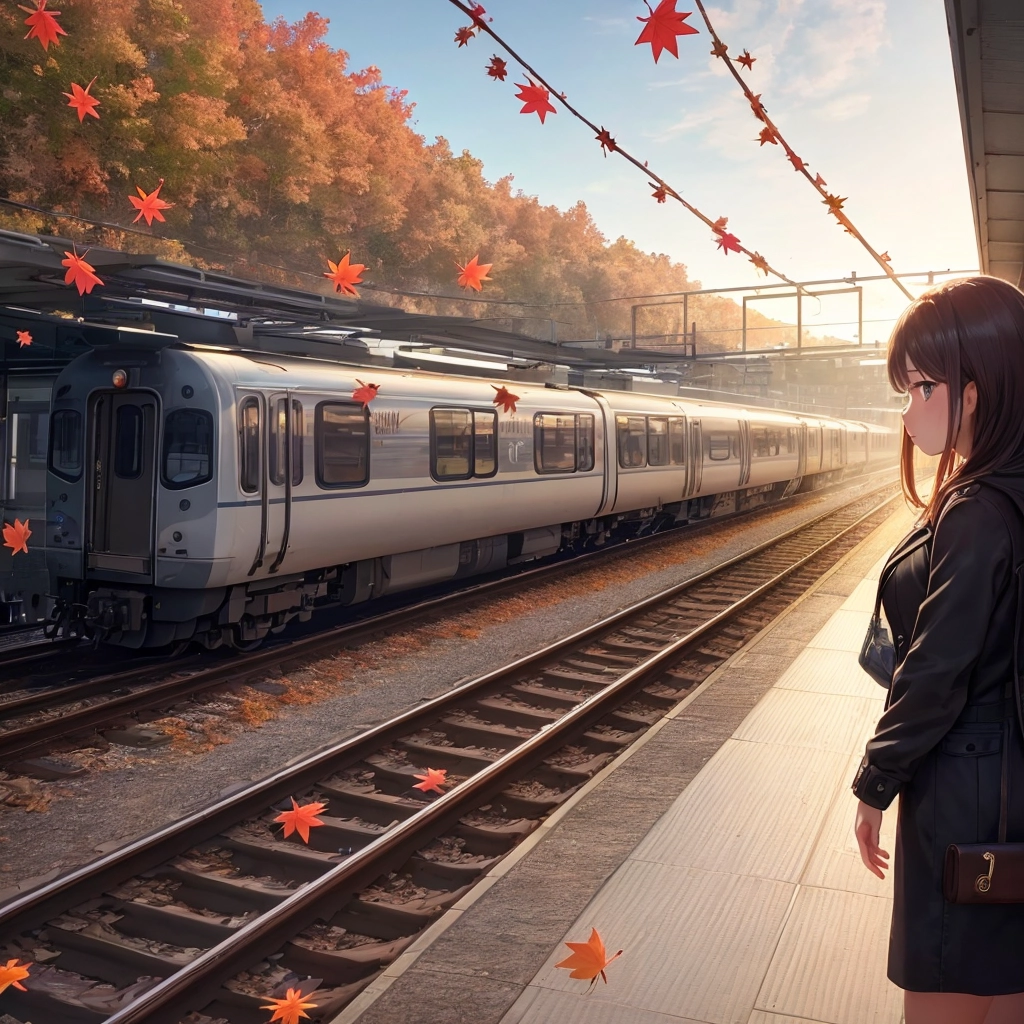 楓にまみれて電車を待つ