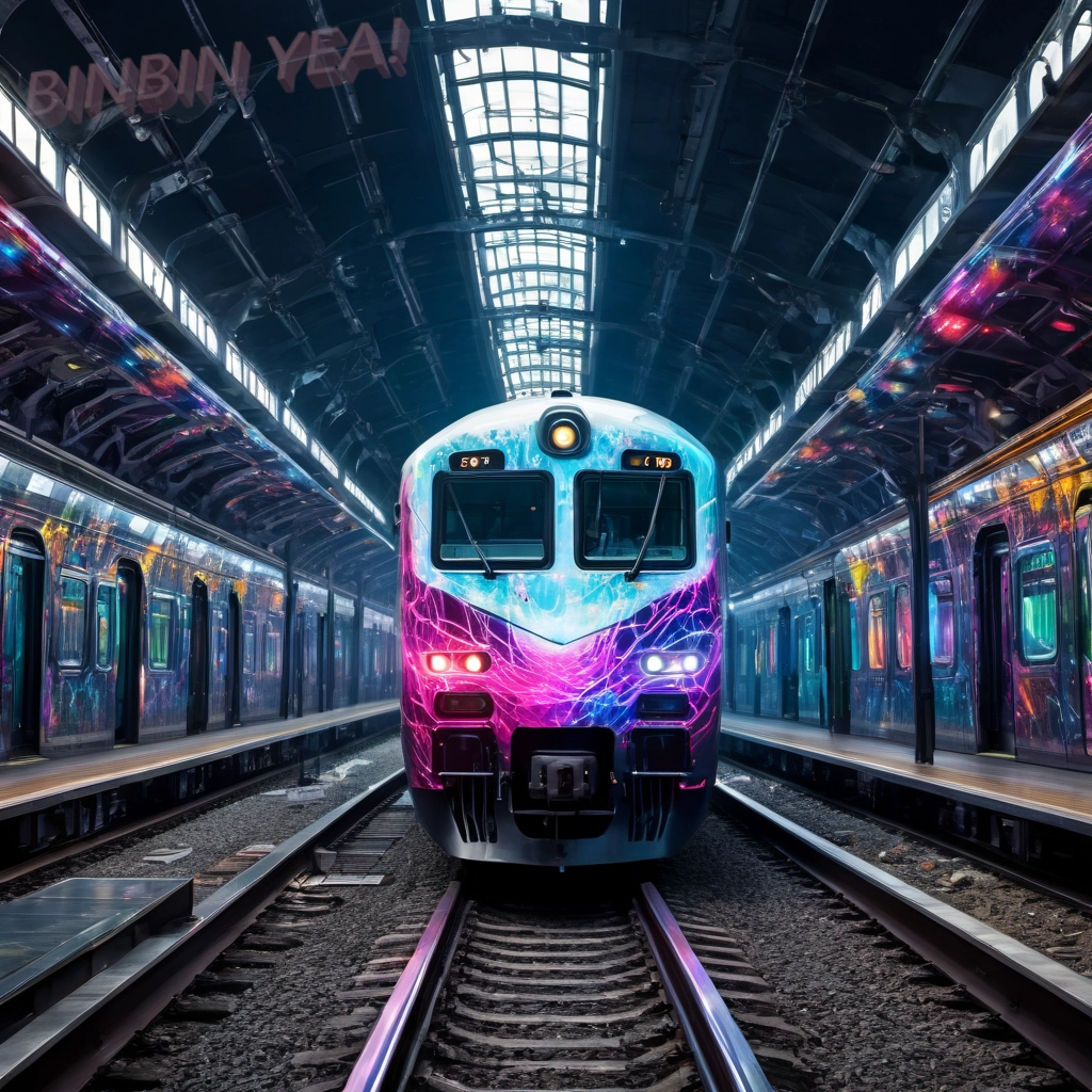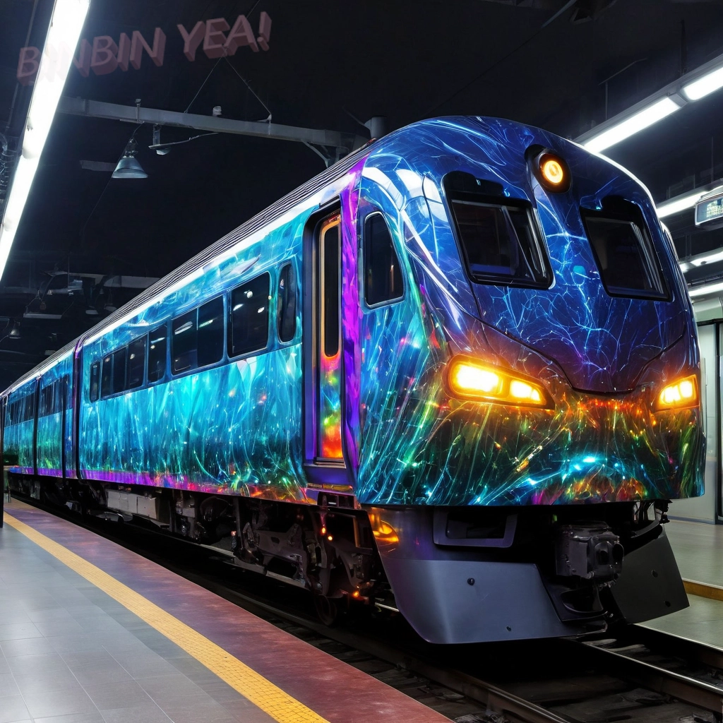 わあ素敵な電車にゃね、ゲーミングカラーにゃ。