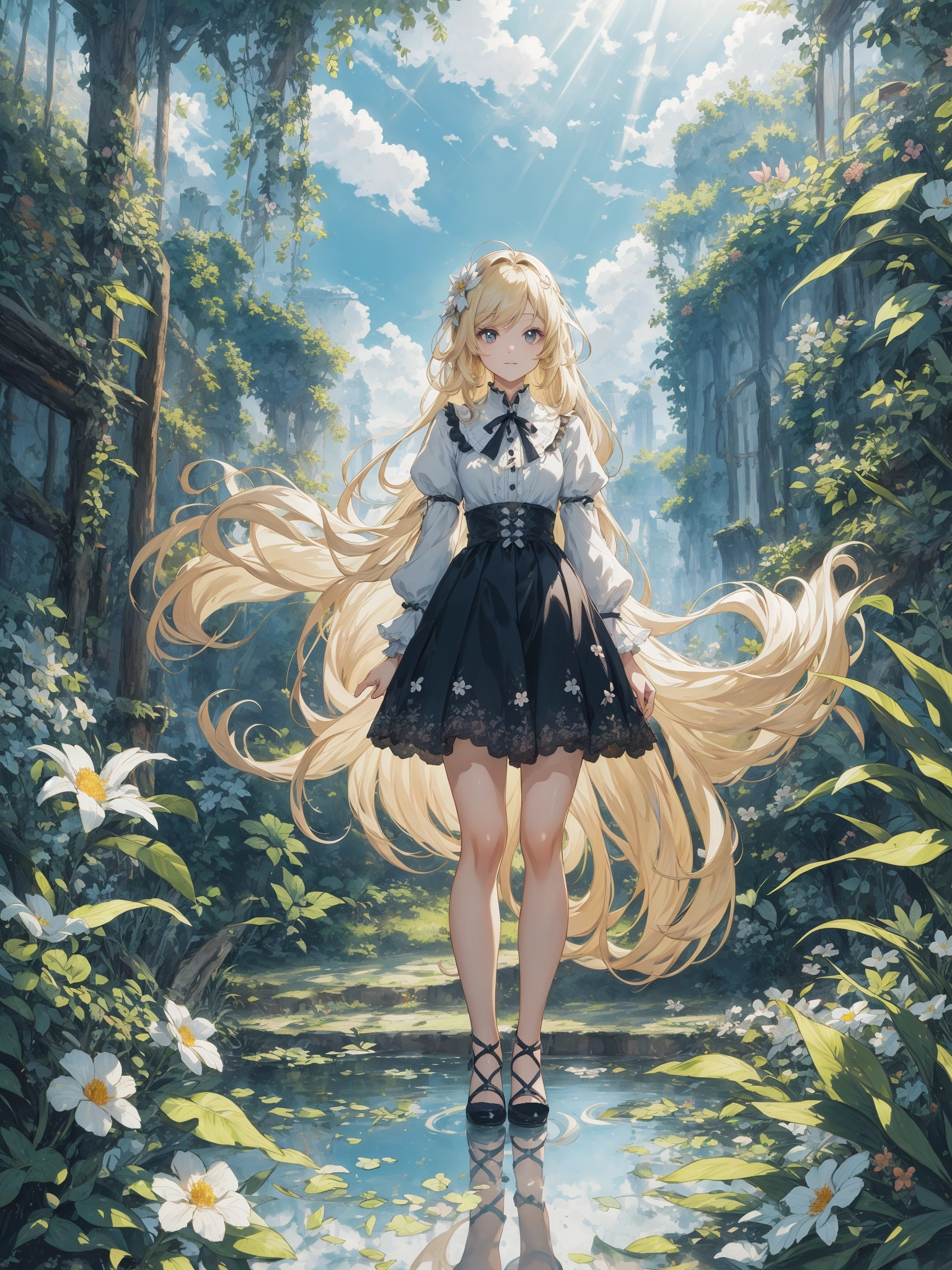 (masterpiece, best quality:1.3), illustration, (extream detailed), one girl, angel Descending