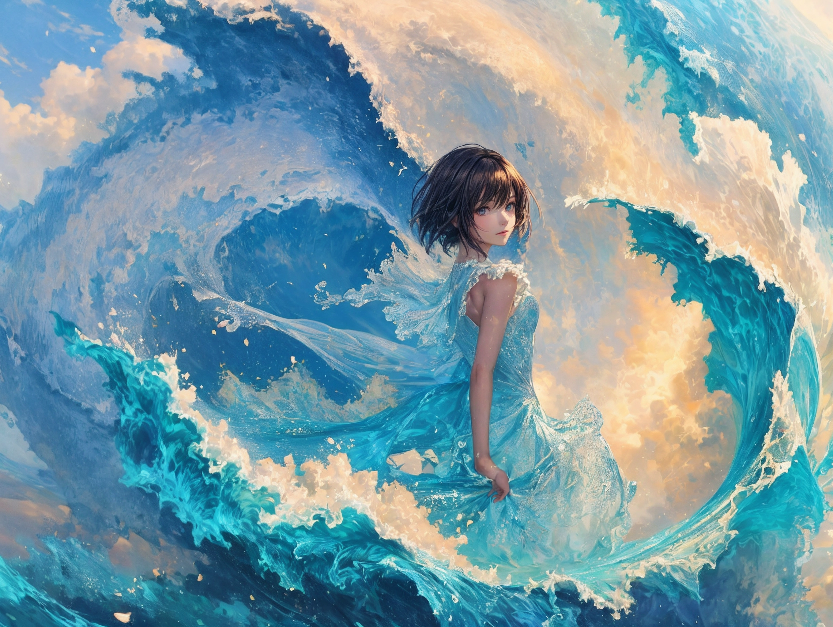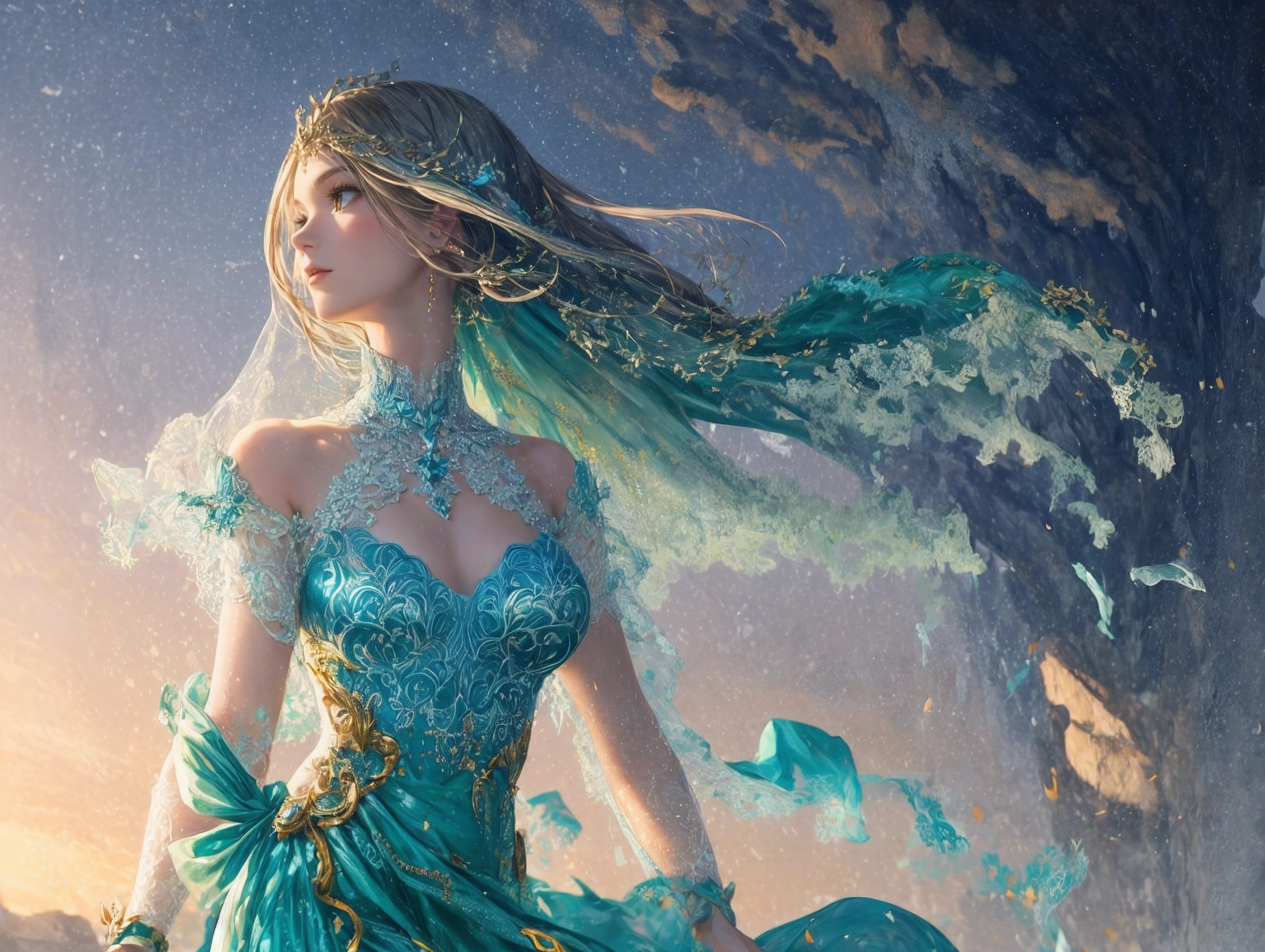 (masterpiece, best quality:1.3), illustration, (extream detailed), one girl, angel Descending