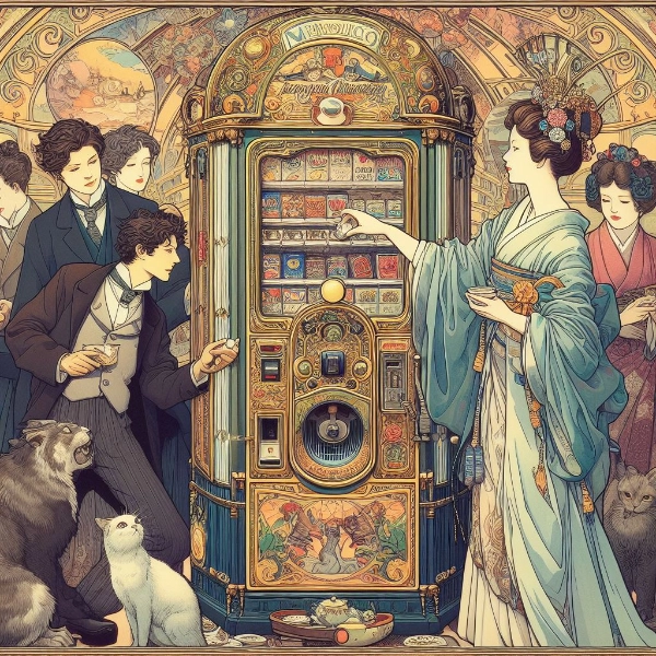 竹下夢二をしているせいなのか、明治、大正の浮世絵風和洋折衷絵になりました