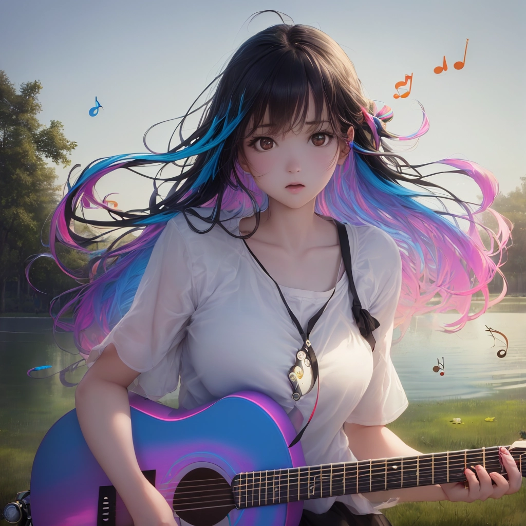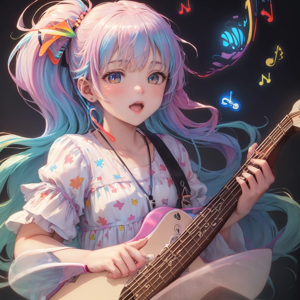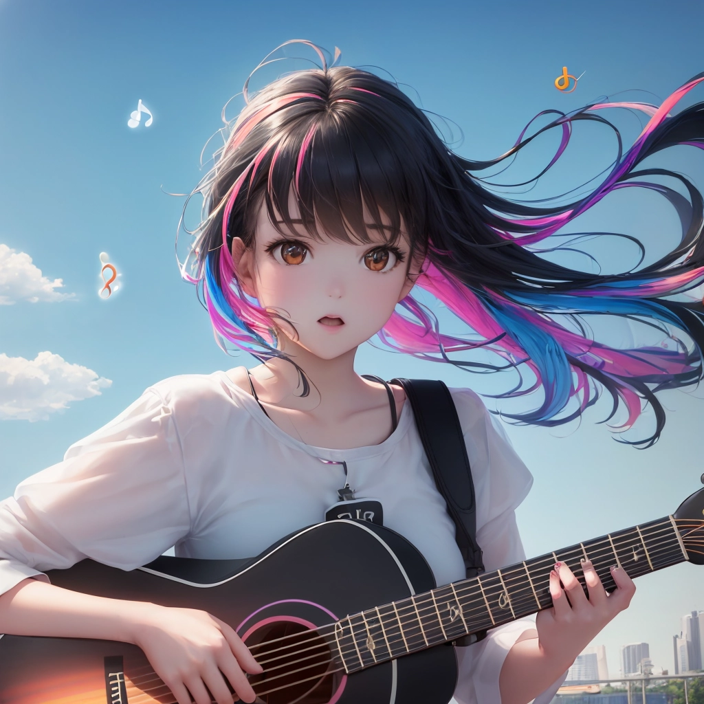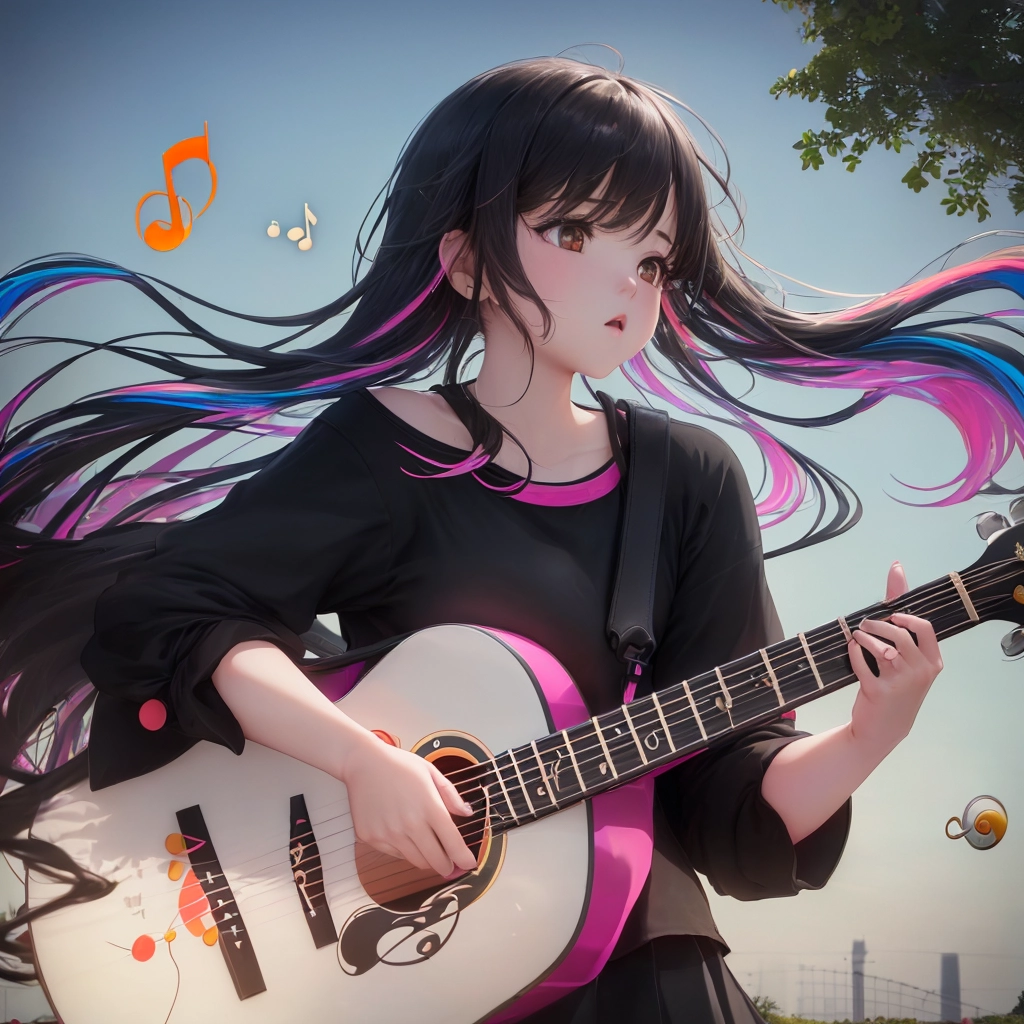 ギターのメロディーに踊る音符