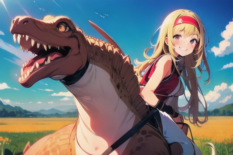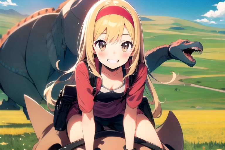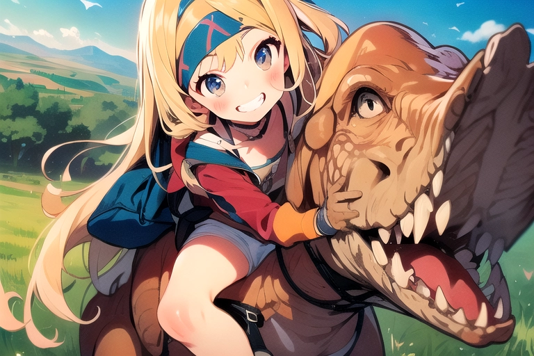 A girl traveling with dinosaurs
