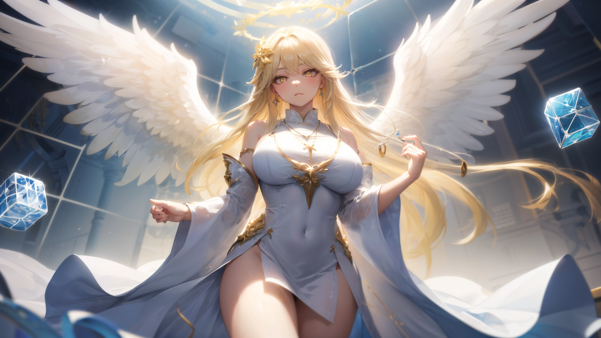(masterpiece, best quality:1.3), illustration, (extream detailed), one girl, angel Descending