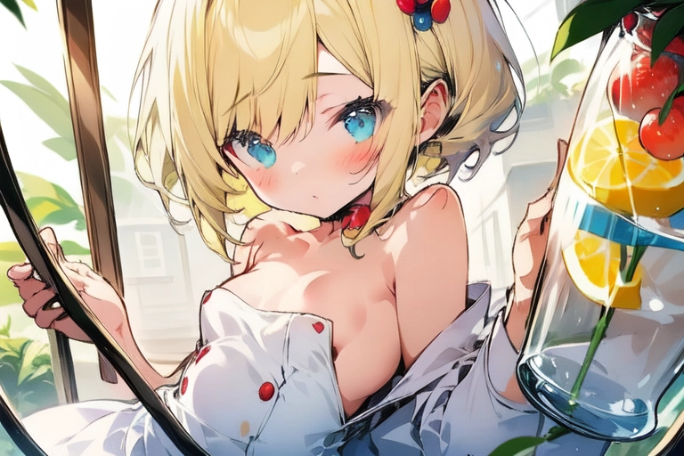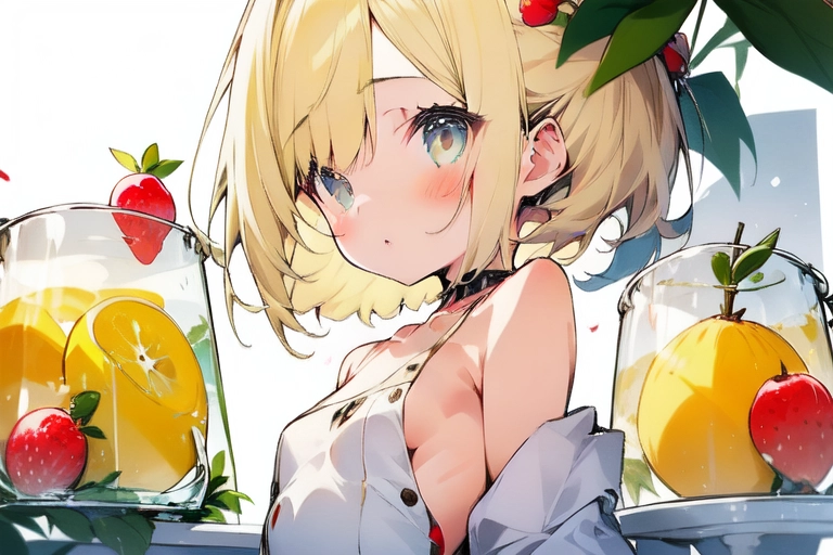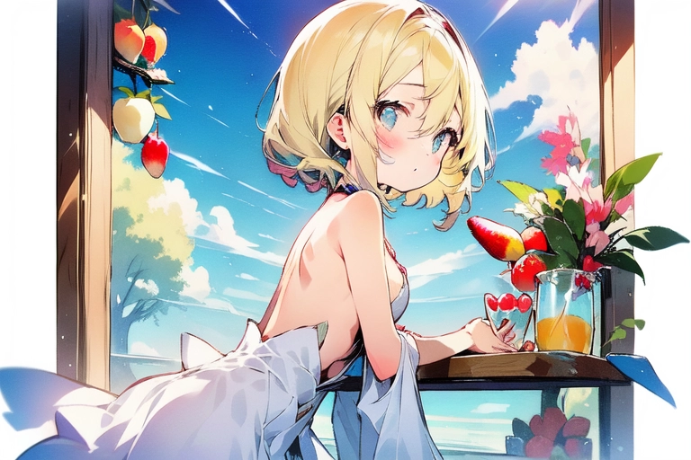 A risqué girl and tropical fruits