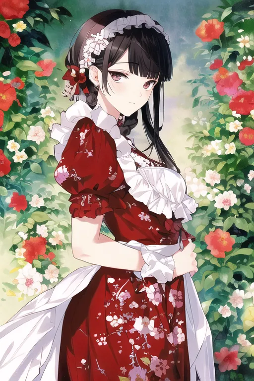 Flower Print Red Maid
