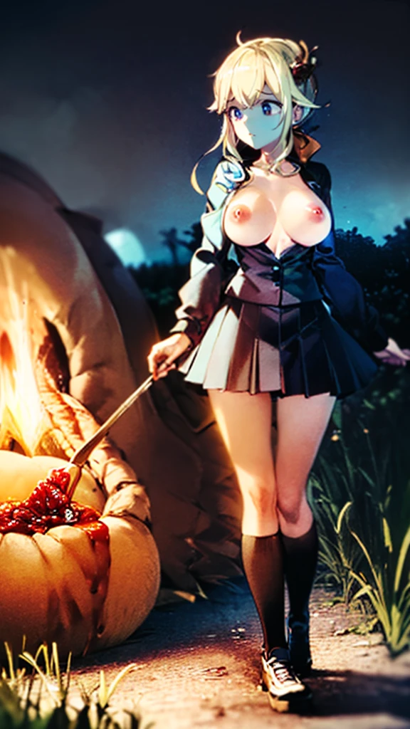 Aoi Inuyama's Sailor Suit Camp! Topless art nude fascinated by the beauty of the bonfire and mountains