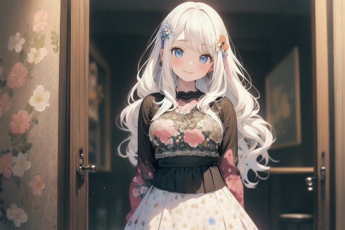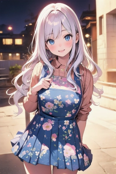 実はこの画の前に投稿したジャンパースカート成功画と全く同じプロンプトなんです(´・ω・`) 「School costume, Jamper skirt」 とでも記述すれば十中八九ジャンパースカートの学生服が生成されそうですが、無地じゃなくてレトロな花柄のジャンパースカートが描きたかったので、悪あがきしました(^ω^)