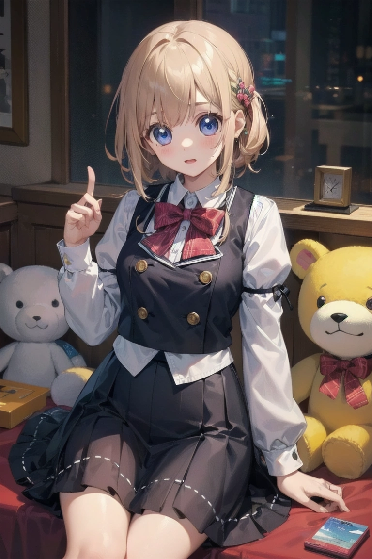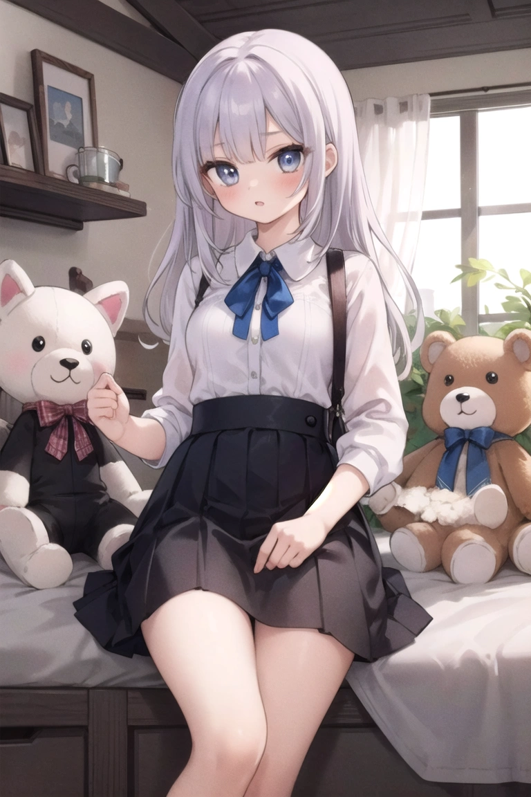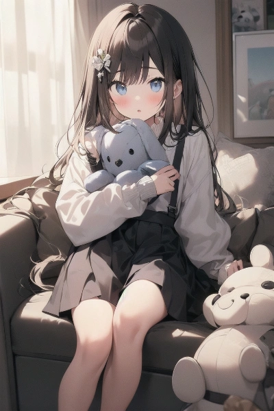 Prompts: masterpiece, best quality, extremely detailed, girl, skirt, stuffed toy,,