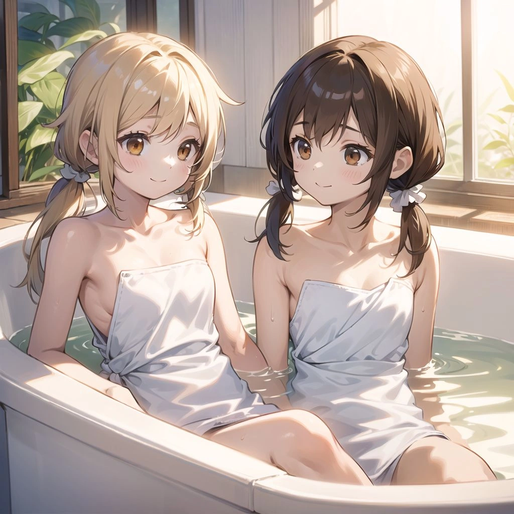 一緒にお風呂に入る二人