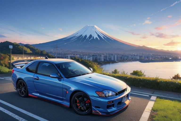 富士山と車