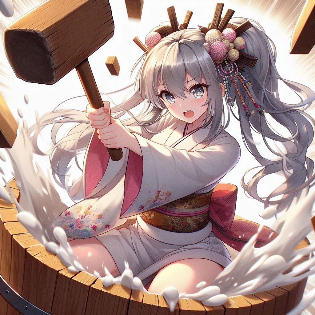 結構4枚目の構図で出てくるようですね…立杵のやつw そしてイライラされた皆さんが、皆さん力業(パンチやら巨大ハンマーやらで)で餅をつく方向に行くのが面白かったですw