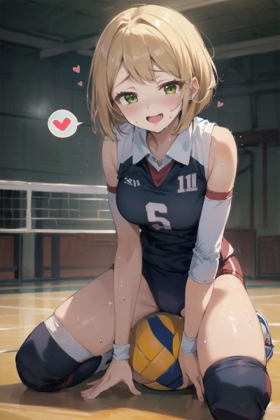 ボールに跨がるバレーギャル