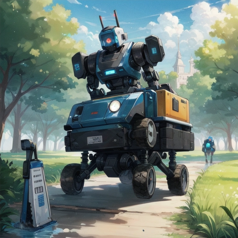 お題『ロボット』公園を清掃するロボット