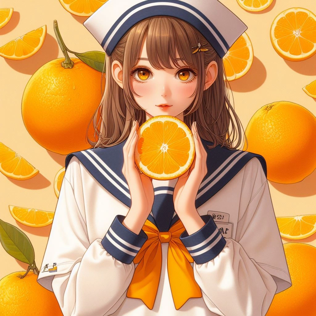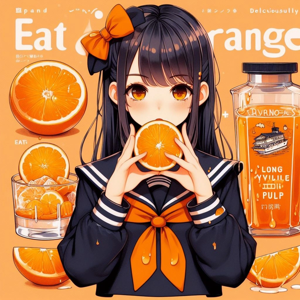 オレンジ食べてる, セーラー服, 広告, で遊んでいました 色々なもので遊んでも楽しそうです!