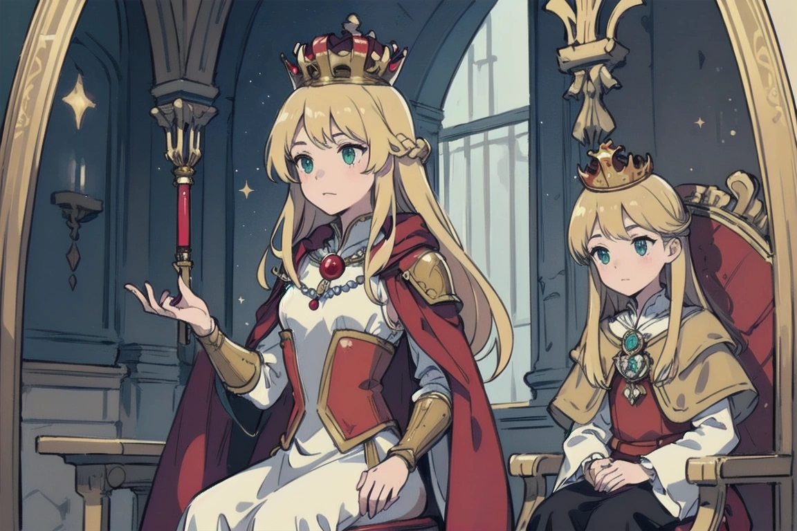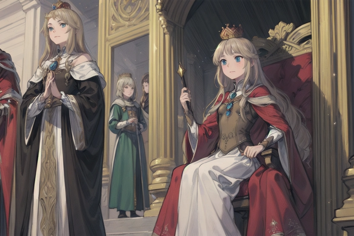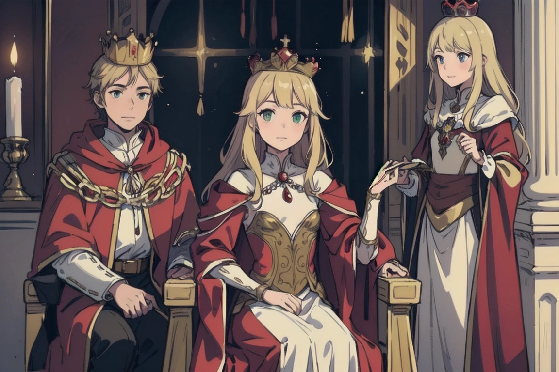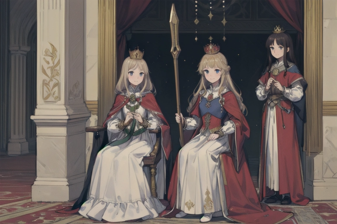 3rd photo: Different touch. The person on the right is probably a princess (or maybe a queen), and although the chair is simple, the crown is luxurious. And then there was the noise.