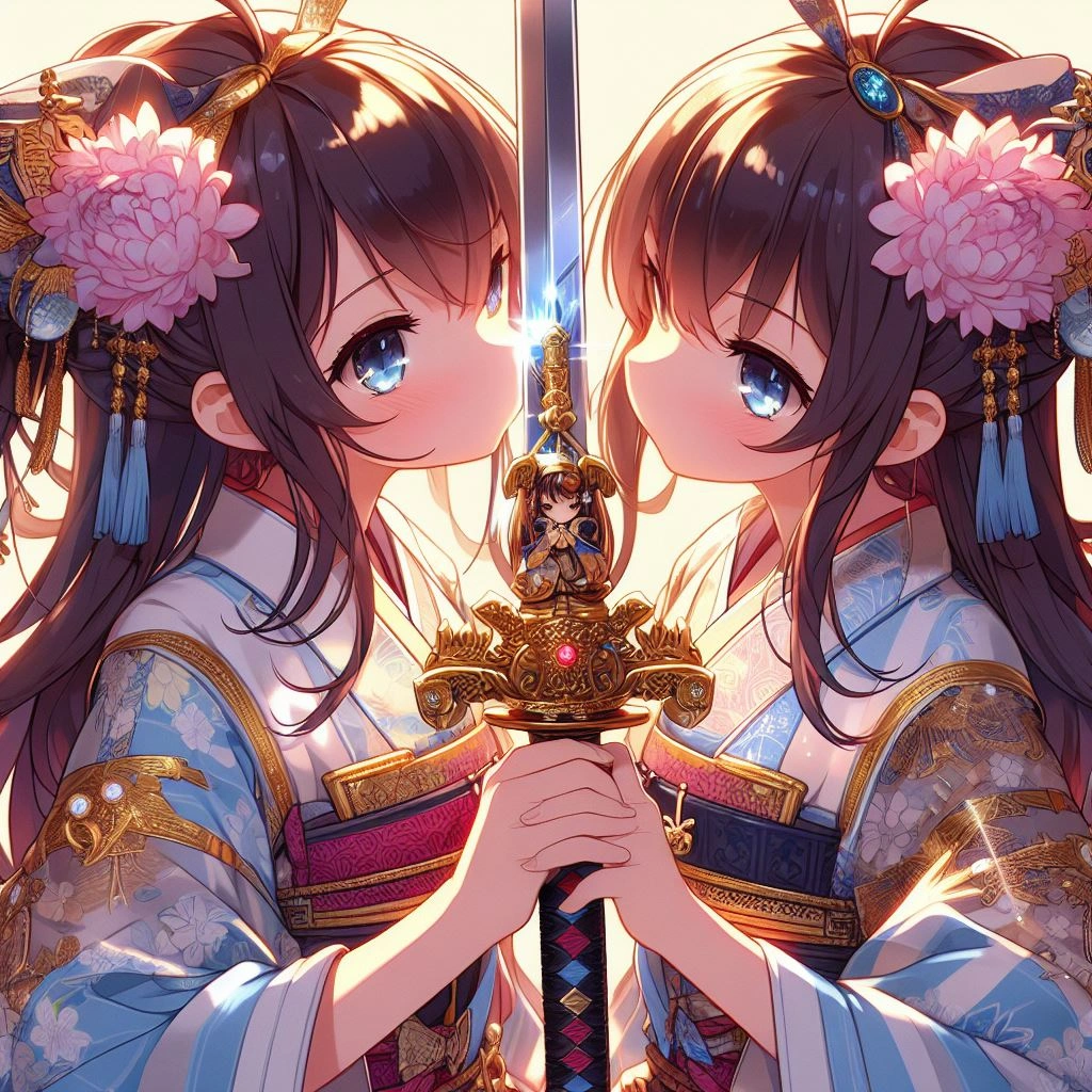 正気を装いつつ、しっかり刃に正面からキスさせようとしているDALL-E3先生大好き💕