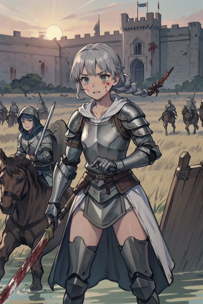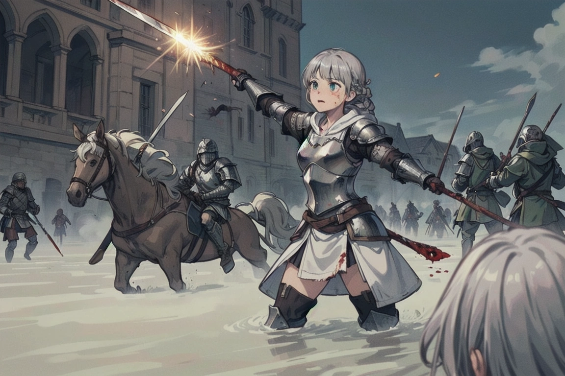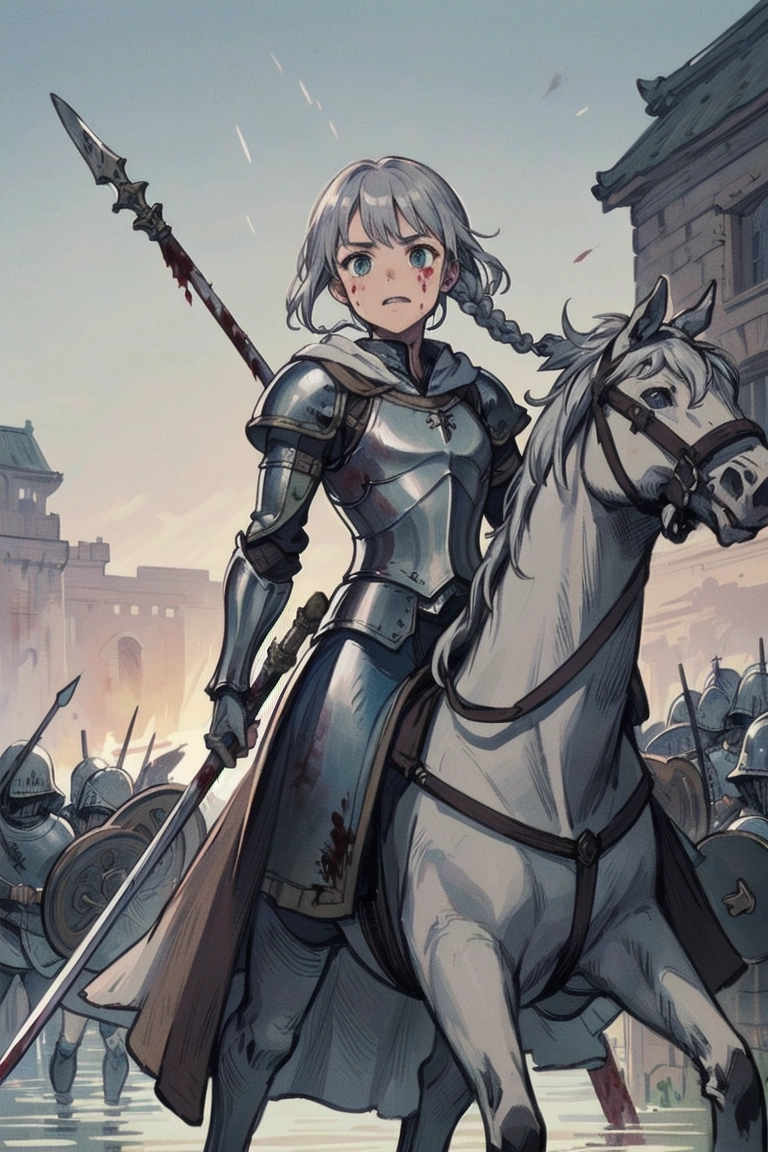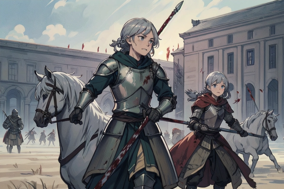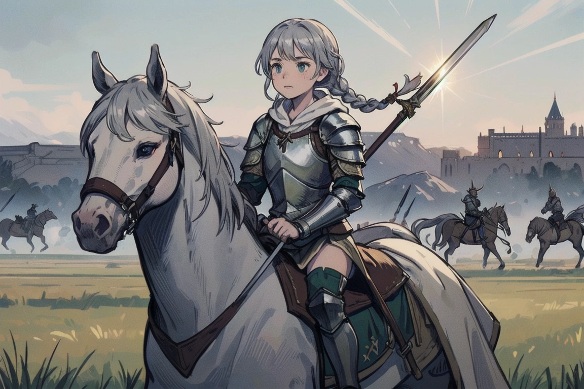 13th photo: Whether it\'s siege or defense, she stands in front on horseback (the princess\'s legs...I\'m sure she\'s sitting on it).